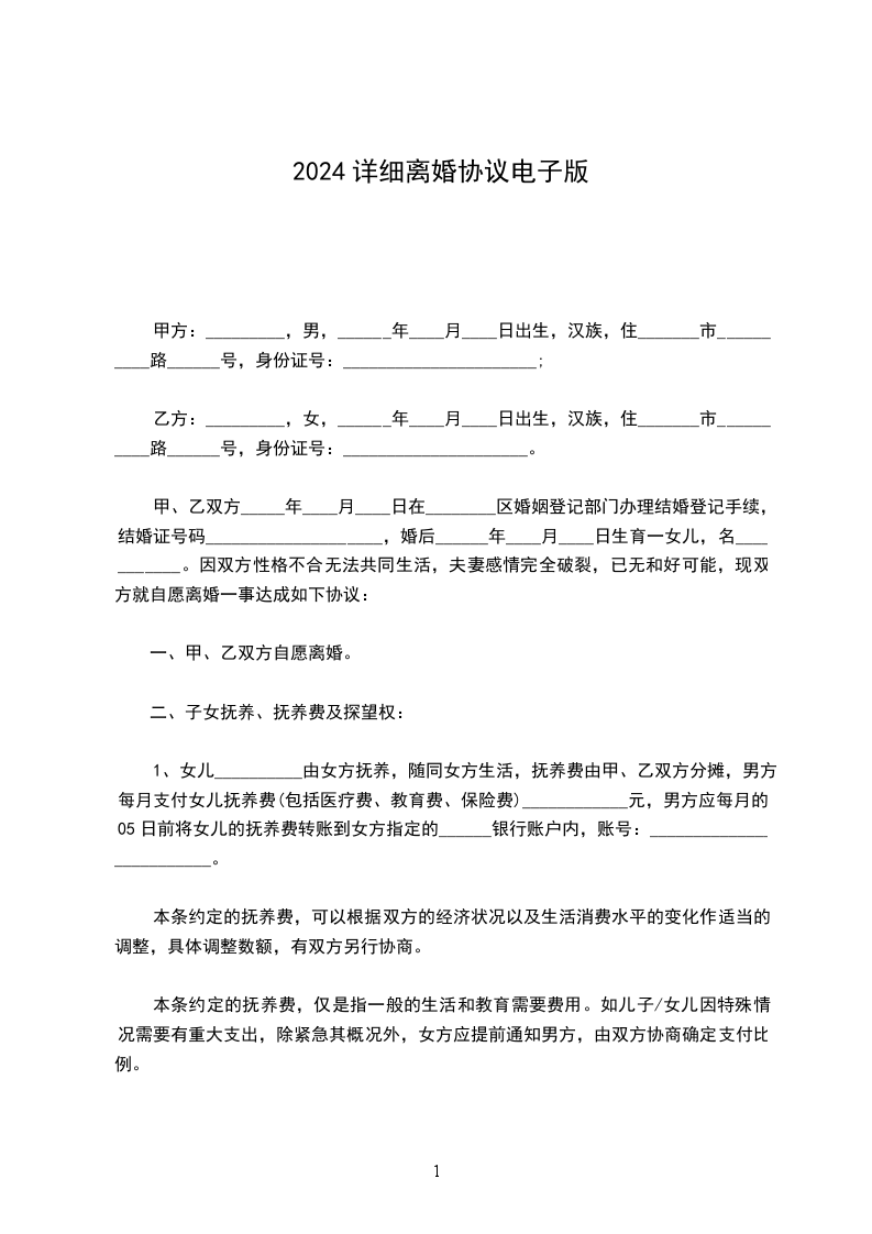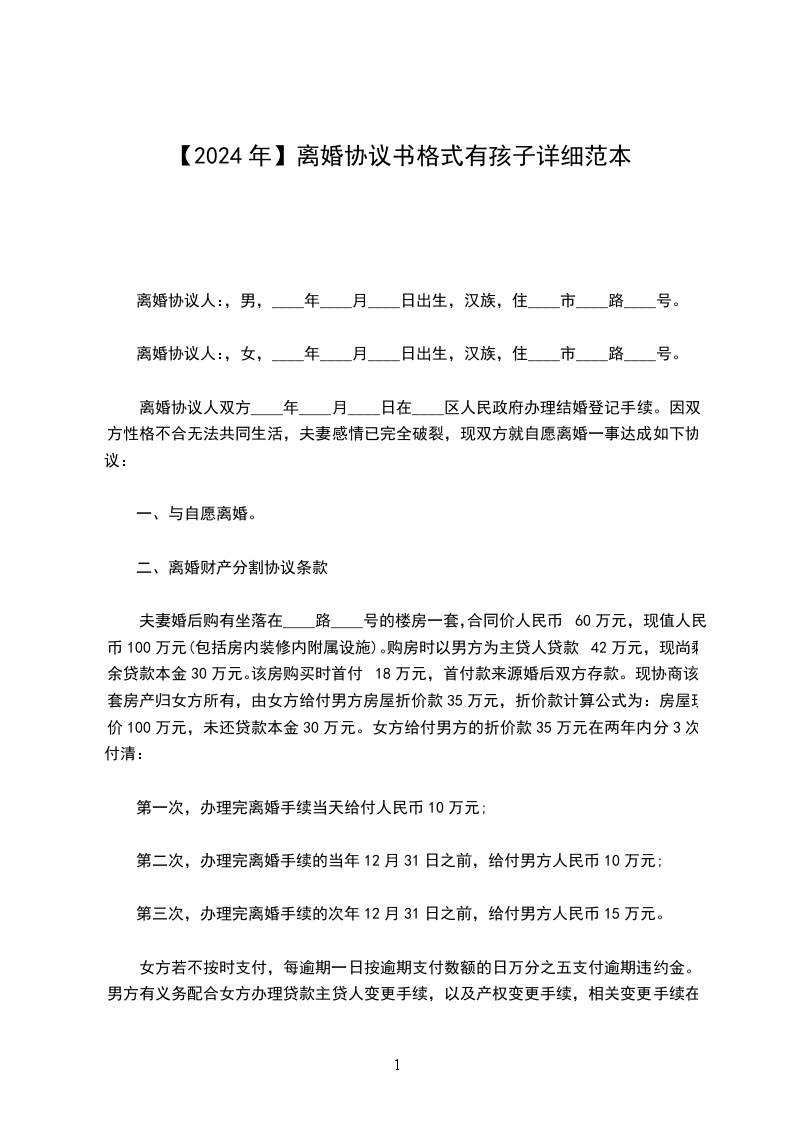 离婚协议人:,女,____年____月____日出生,汉族,住____市____路____号。
