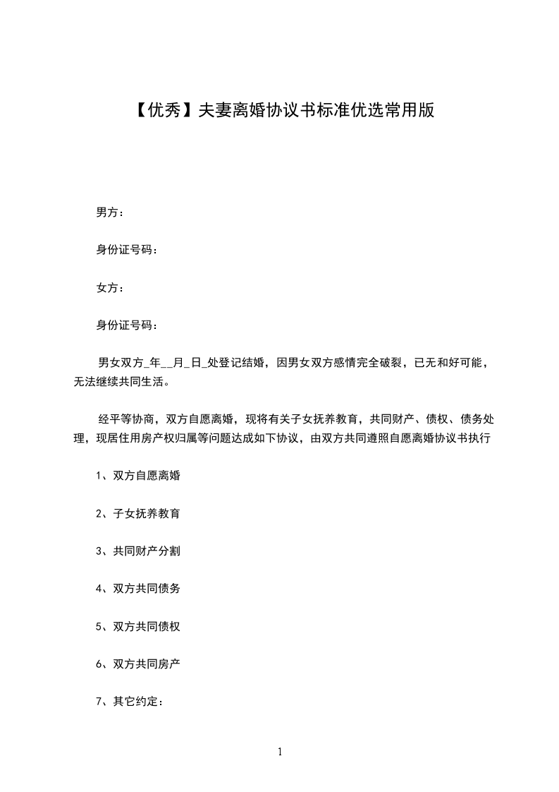 一、男女双方均自愿离婚。