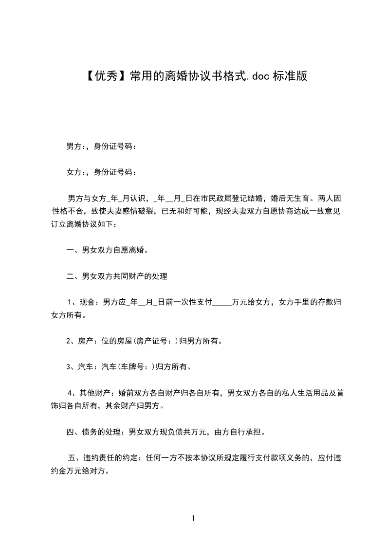 男方:,女,汉族,_年_月_日出生,住址_,身份证号码: