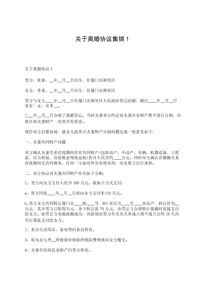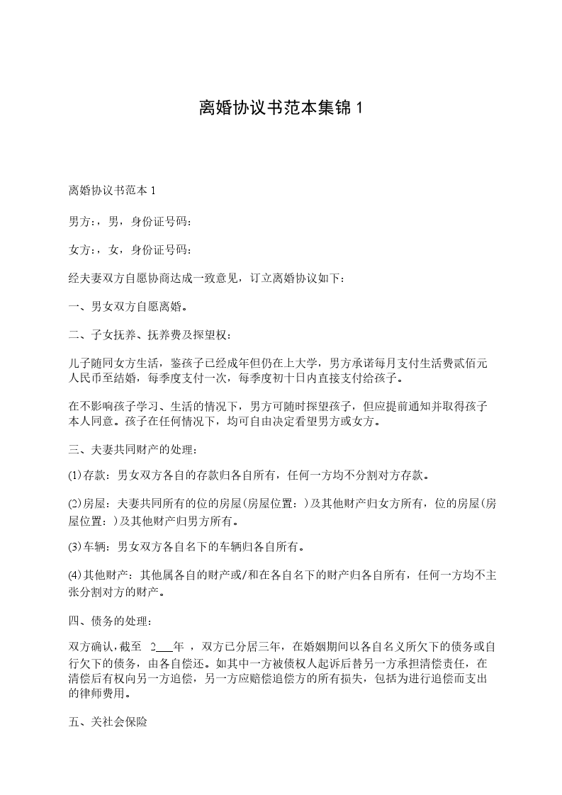 离婚协议书范本11男方:_______,_______族,_______年_______月_______日生,身份证号码:_____________________