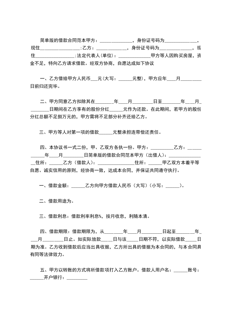 第二条借款金额借款方向贷款方借款人民币______万元。________年____月____日前交付甲方提供的银行账户,开户银行账号。