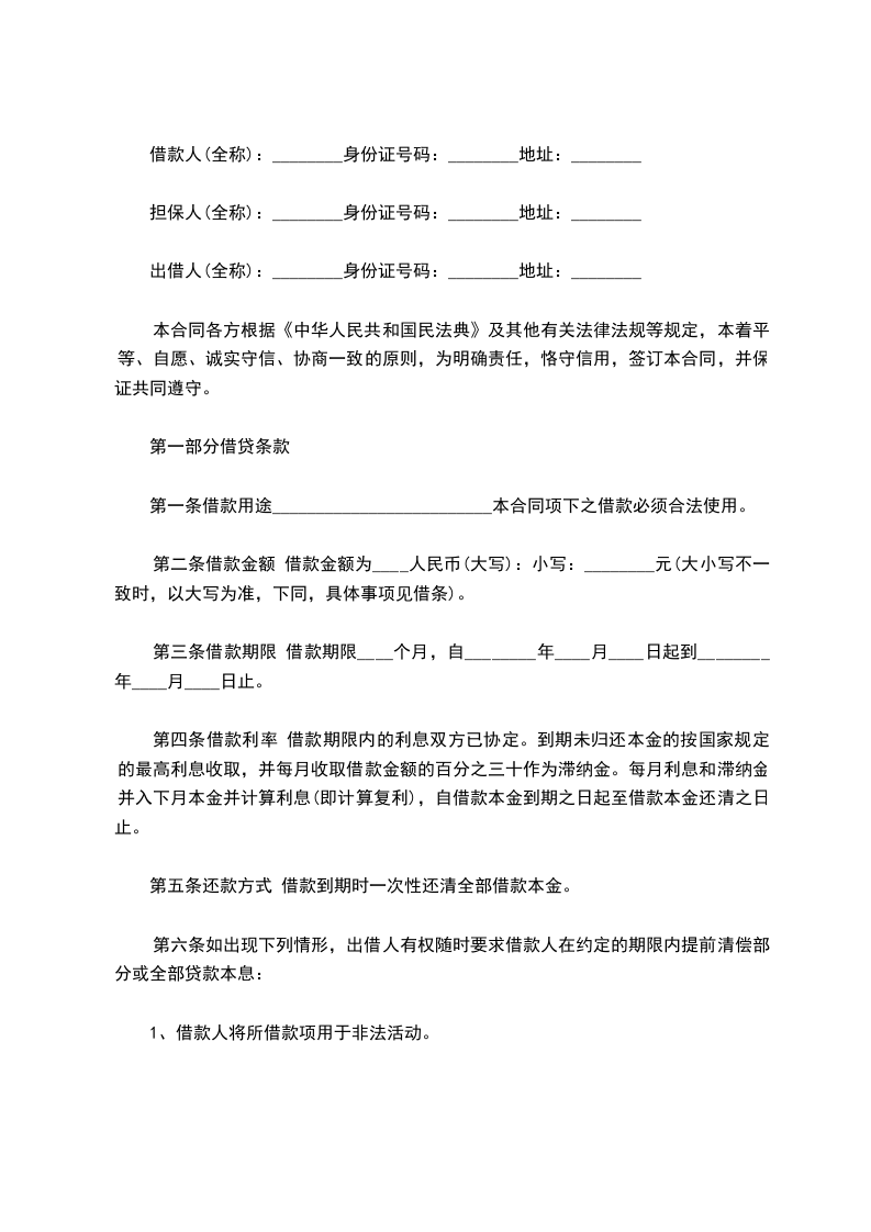第九条其他本合同任何一方当事人不得擅自变更或解除合同。当事人一方依照《民法典》规定要求变更或解除本借款合同时,应及时采用书面形式通知当事人,并达成书面协议。本合同变更或解除之后,借款方已占用的借款和应付的利息,仍应按本合同的规定偿付。本合同如有未尽事宜,须经合同双方当事人共同协商,作出补充协议,补充协议与本合同具有同等效力。本合同正本一式两份,贷款方、借款方各执一份。