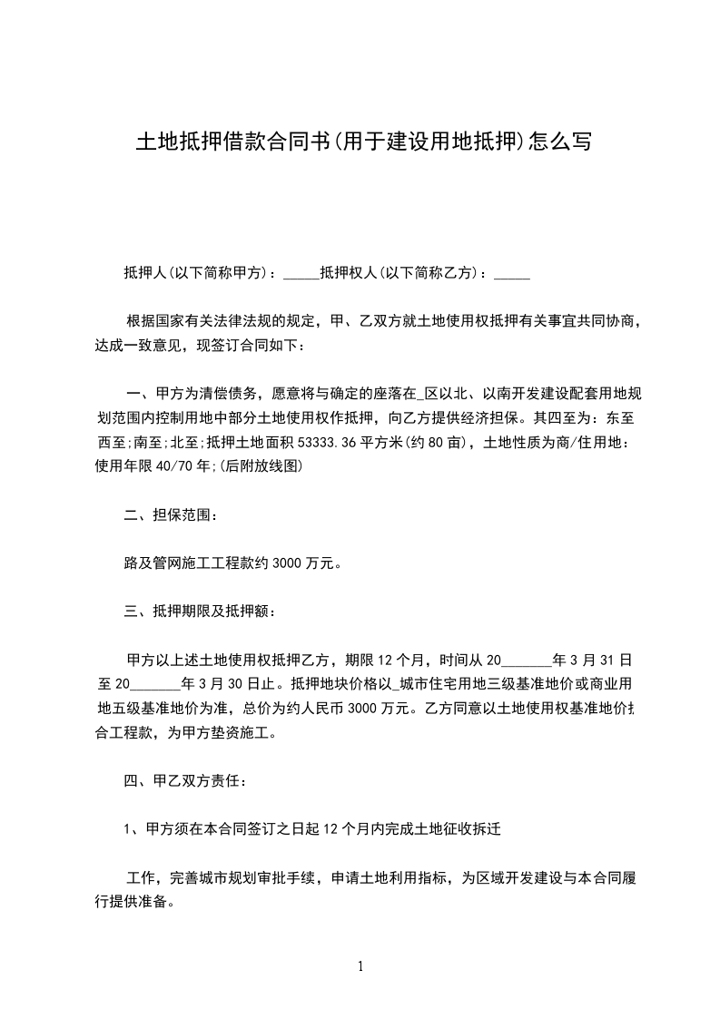 兹因土地抵押借款事宜,经双方同意订立各条款如下: