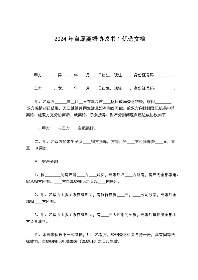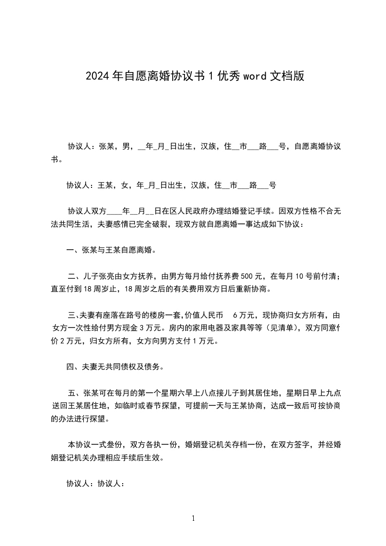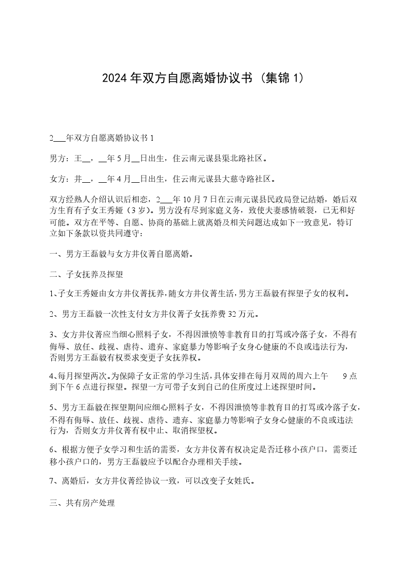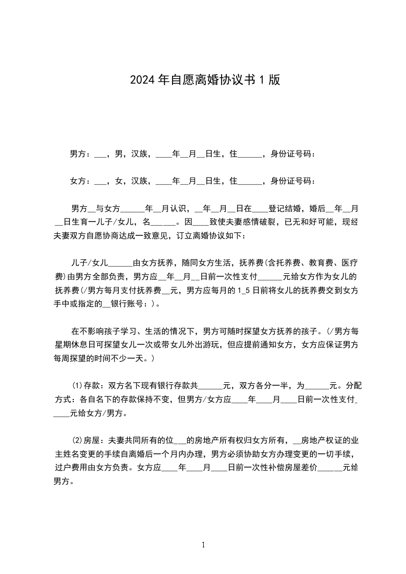 男方__与女方______年__月认识,__年__月__日在____登记结婚,婚后__年__月__日生育一儿子/女儿,名______。因____致使夫妻感情破裂,已无和好可能,现经夫妻双方自愿协商达成一致意见,订立离婚协议如下: