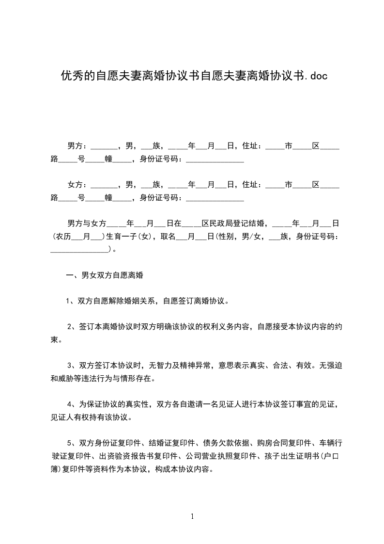 双方__在____________民政局登记结婚,现有一个孩子,因夫妻感情完全破裂,没有和好的可能,经双方协商达成一致意见,定离婚协议如下: