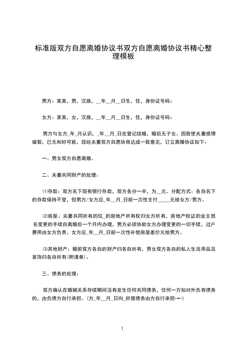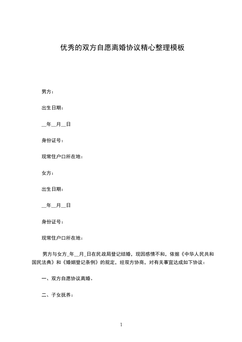 男方与女方_年_月认识,_年__月_日在登记结婚,婚后无子女。因致使夫妻感情破裂,已无和好可能,现经夫妻双方自愿协商达成一致意见,订立离婚协议如下: