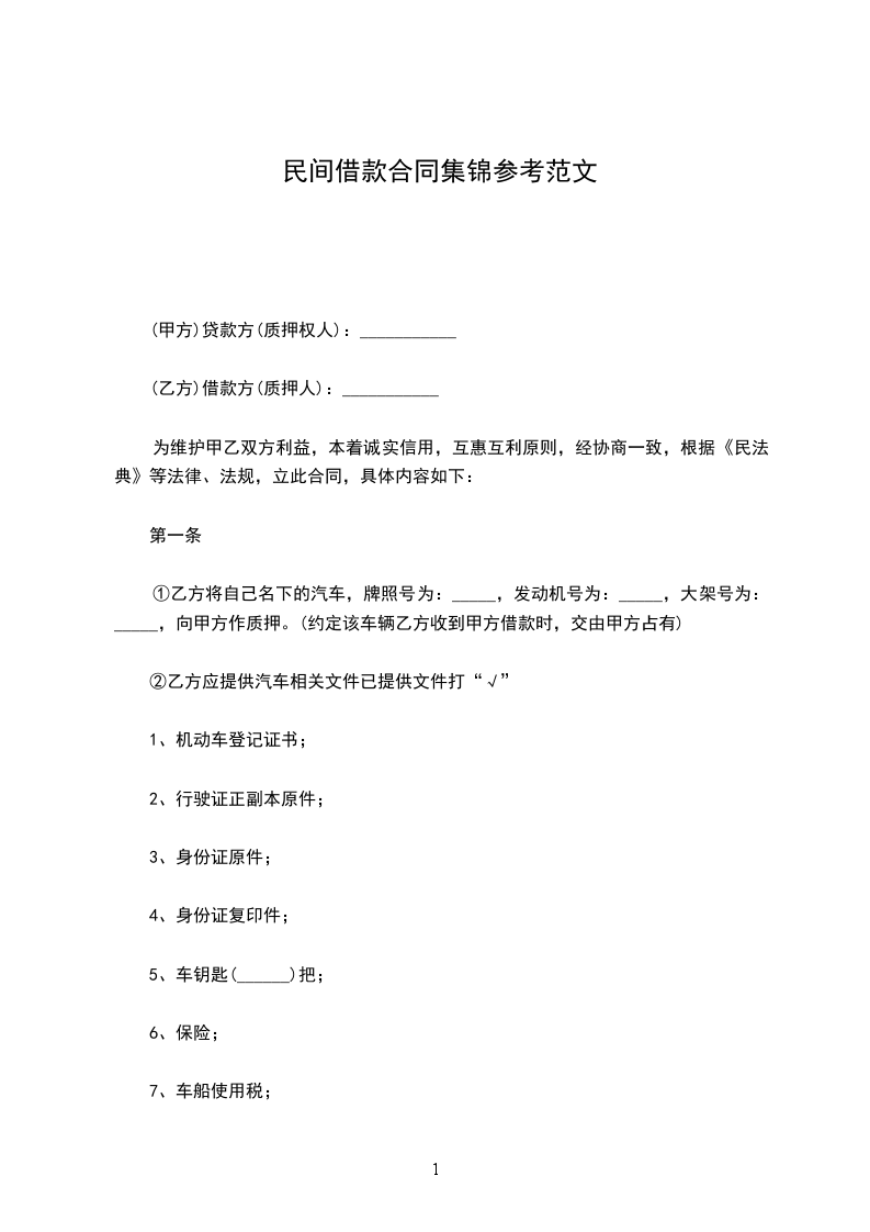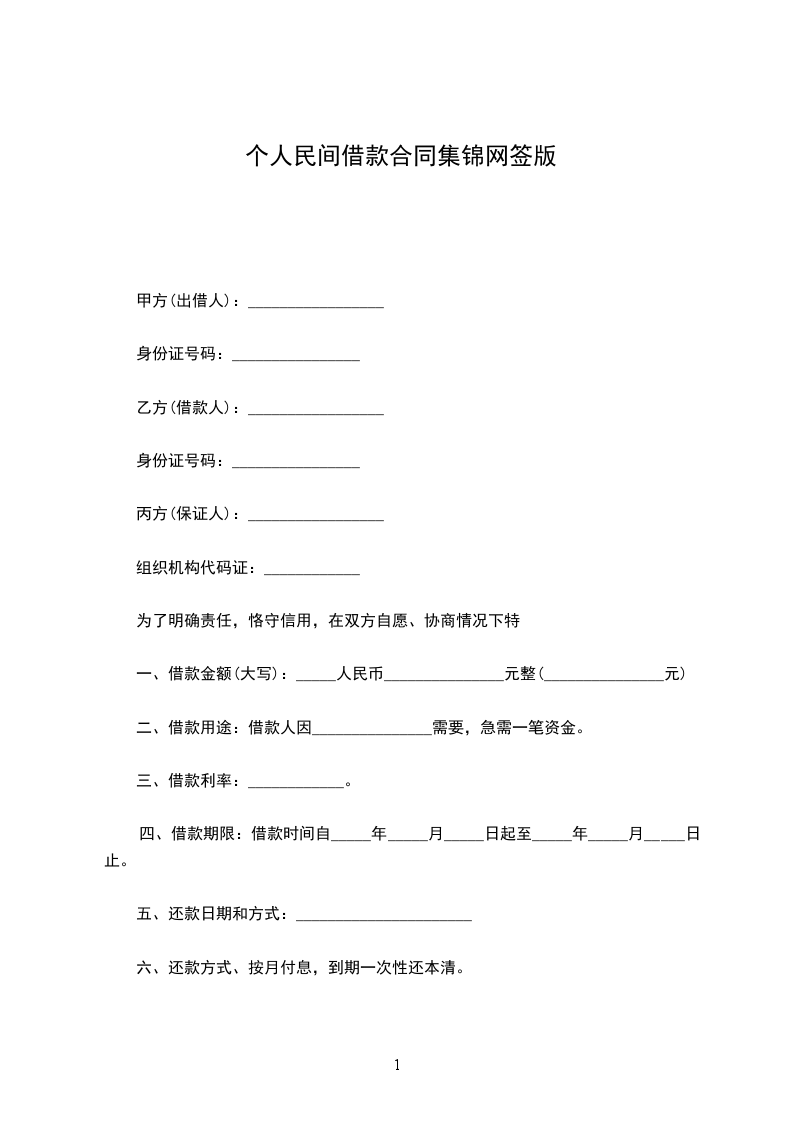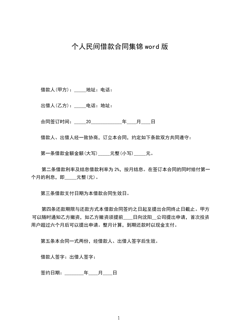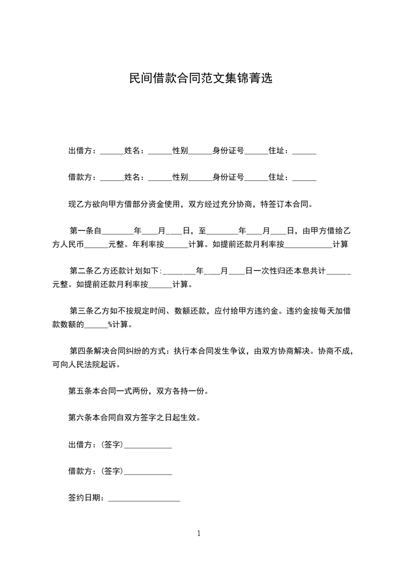 一、乙方贷给甲方人民币(大写)_____________________,_____________________前交付甲方。