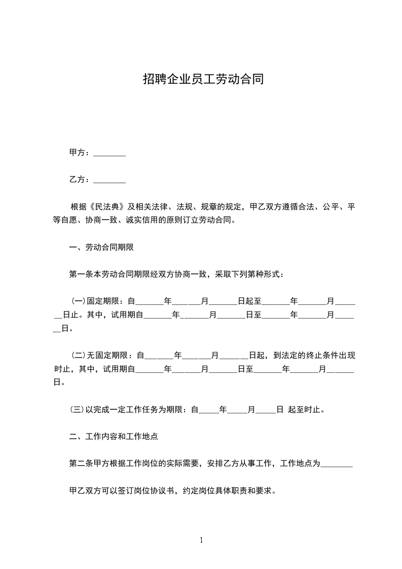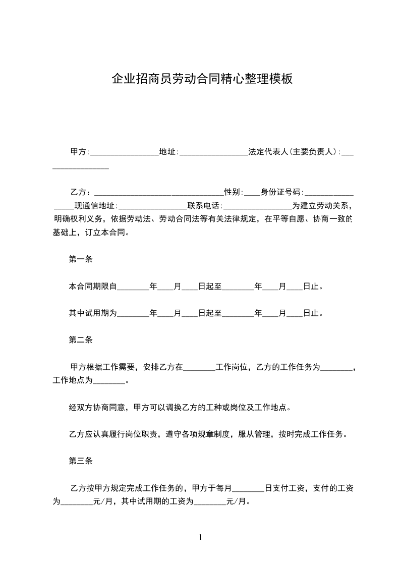 乙方:_________________性别:____身份证号码:_________________现通信地址:_________________联系电话:_________________为建立劳动关系,明确权利义务,依据劳动法、劳动等有关法律规定,在平等自愿、协商一致的基础上,订立本合同。