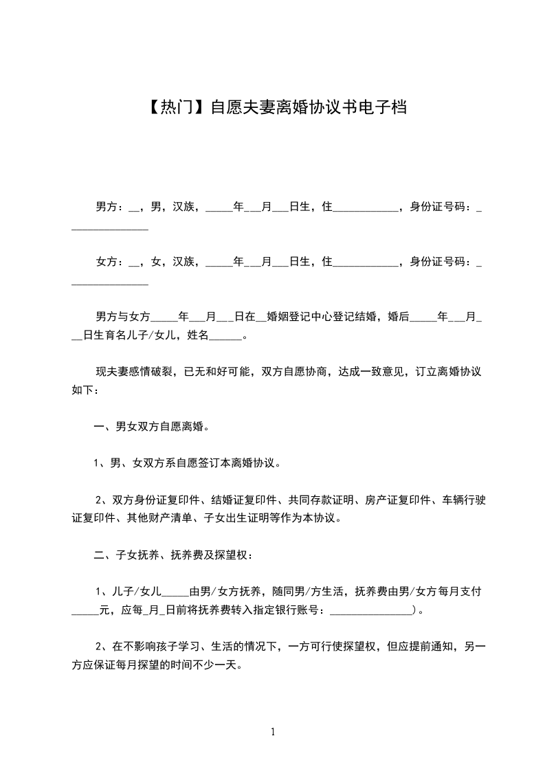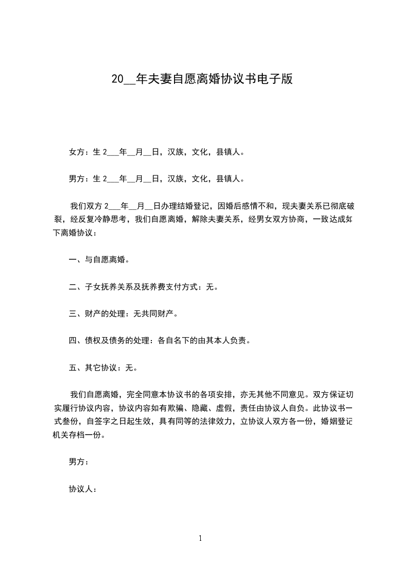 夫妻自愿离婚协议书夫妻自愿离婚协议书电子版篇一