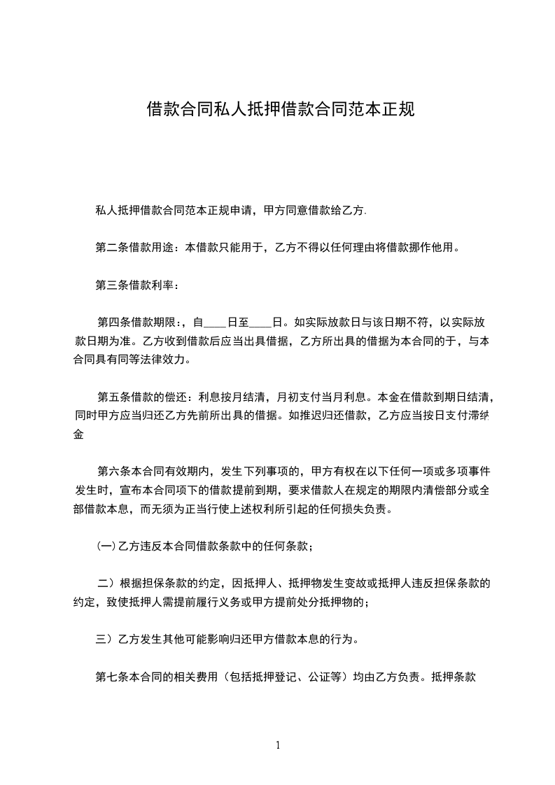 第四条贷款利率贷款利率按签订本合同时公布的利率确定年利率为___%(月利率___%)。在借款期限内利率变更,按中国人民银行规定办理。