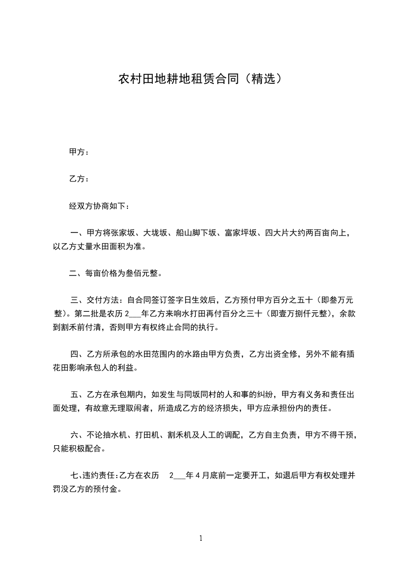 三本合同期限内按每年每亩-----元,当年-----月----日前付清,承租期内,甲方不得将该田地另转包[出租]给第三方,乙方若需转包[出租]应征得甲方同意