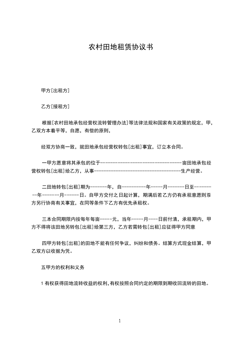 经双方协商一致,就田地承包经营权转包[出租]事宜,订立本合同。