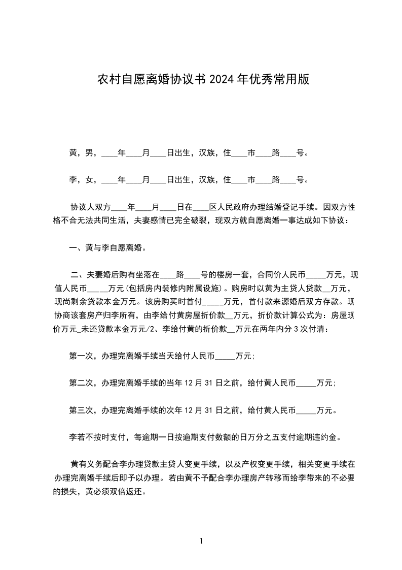 第三次,办理完离婚手续的次年12月31日之前,给付黄人民币_____万元。