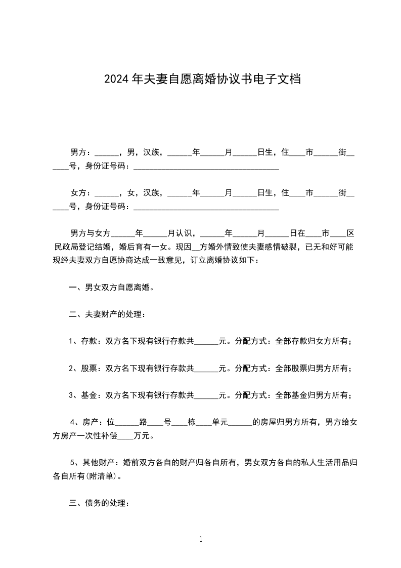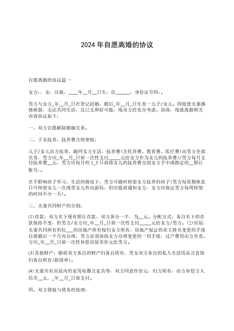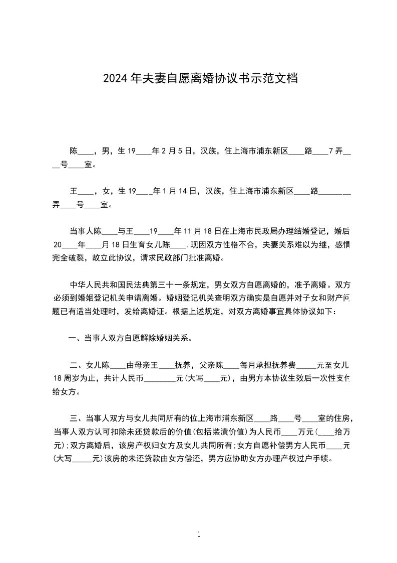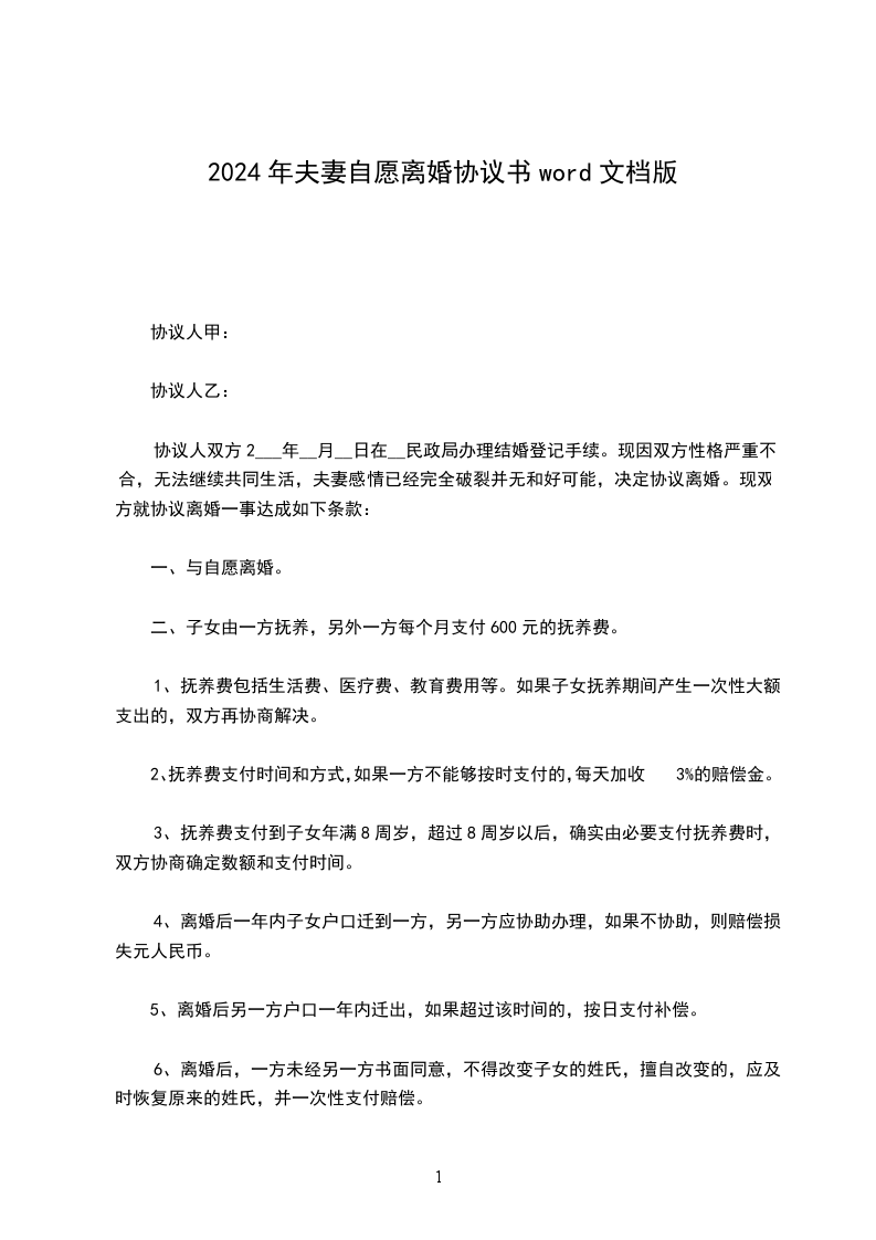 男、女双方_年__月_日结为法定夫妻,年婚生一女,取名。婚后,双方因性格原因,造成感情破裂,现以无法共同生活,经协商双方同意协议离婚,现就子女等方面协议如下: