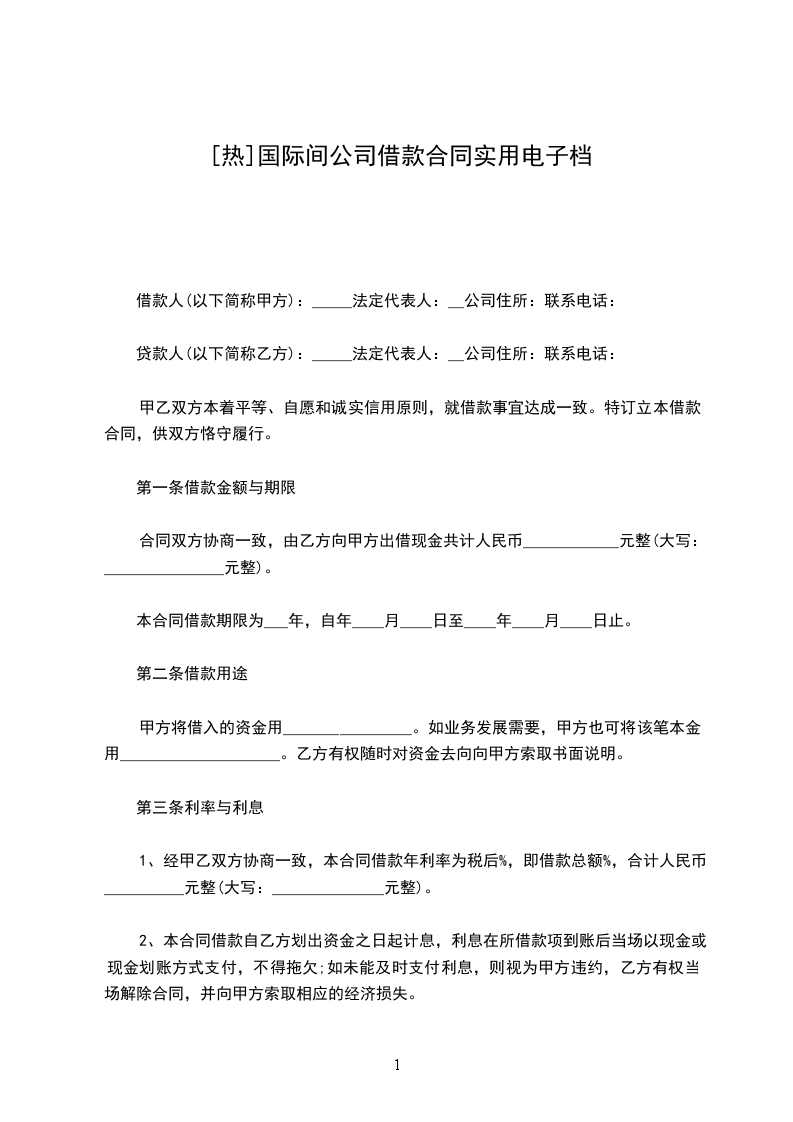 借款人(以下简称甲方):_____法定代表人:__公司住所:联系电话: