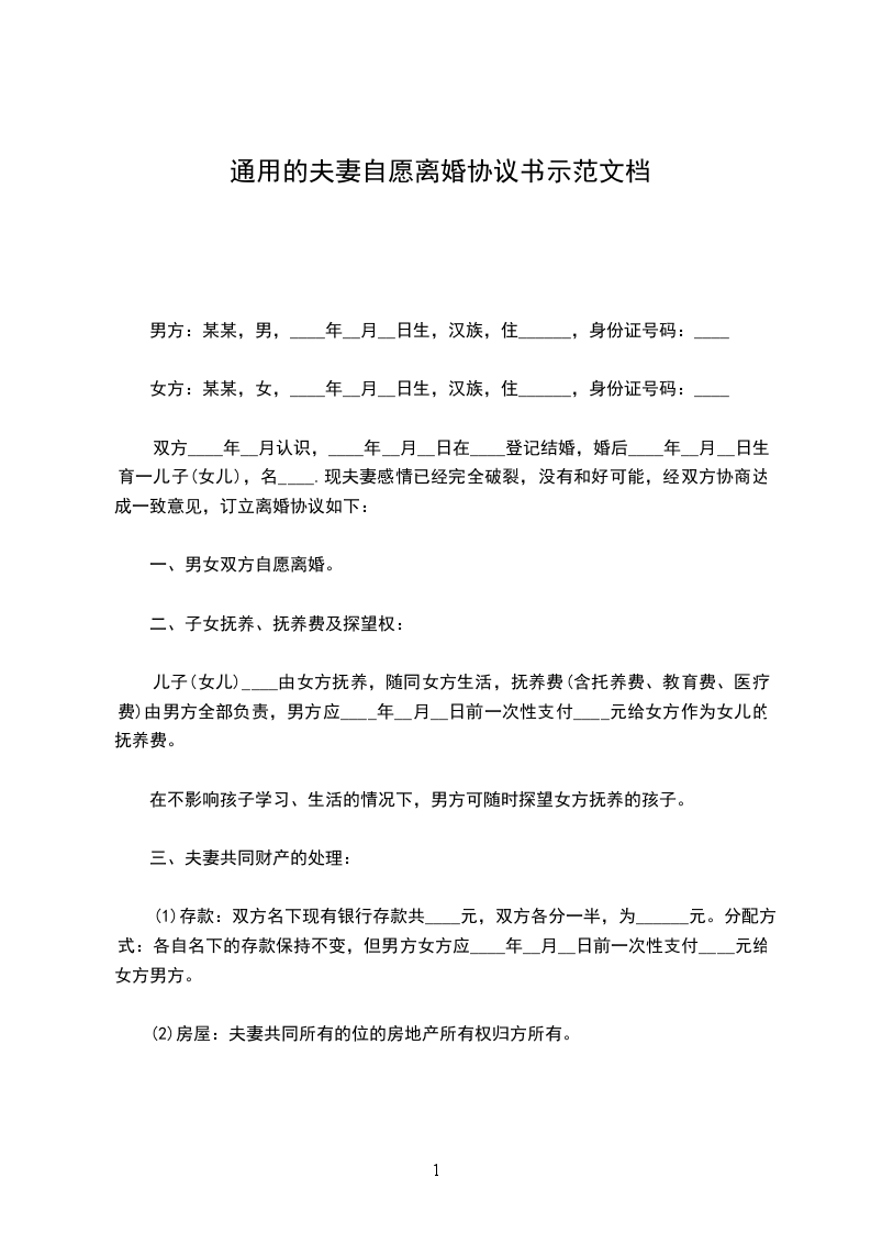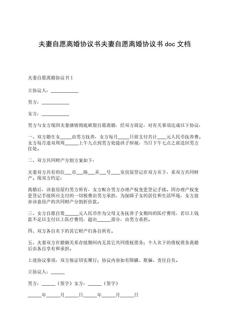 一、男女双方均自愿离婚。