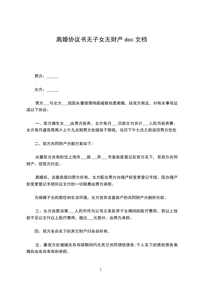 协议人:__女,__年__月__日出生,汉族,住__市__路__号