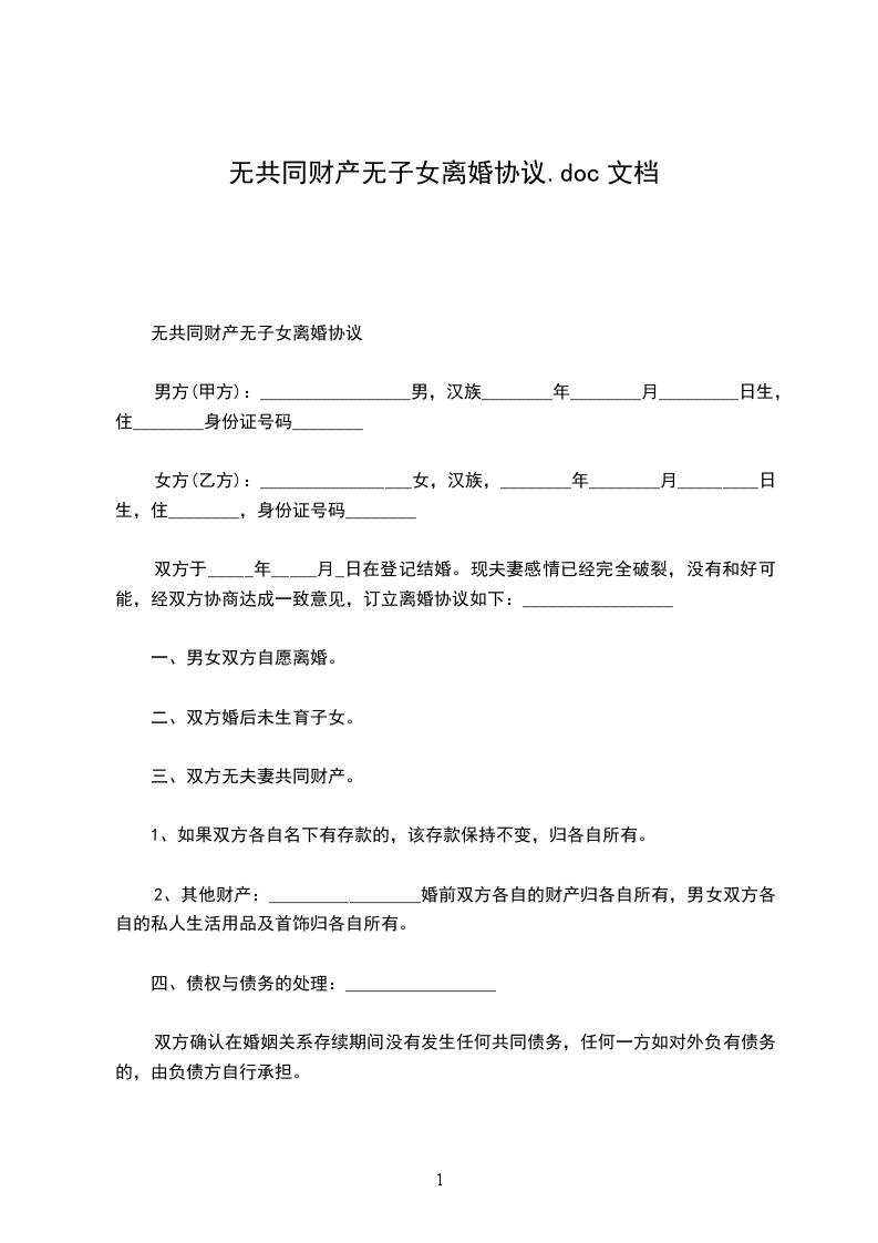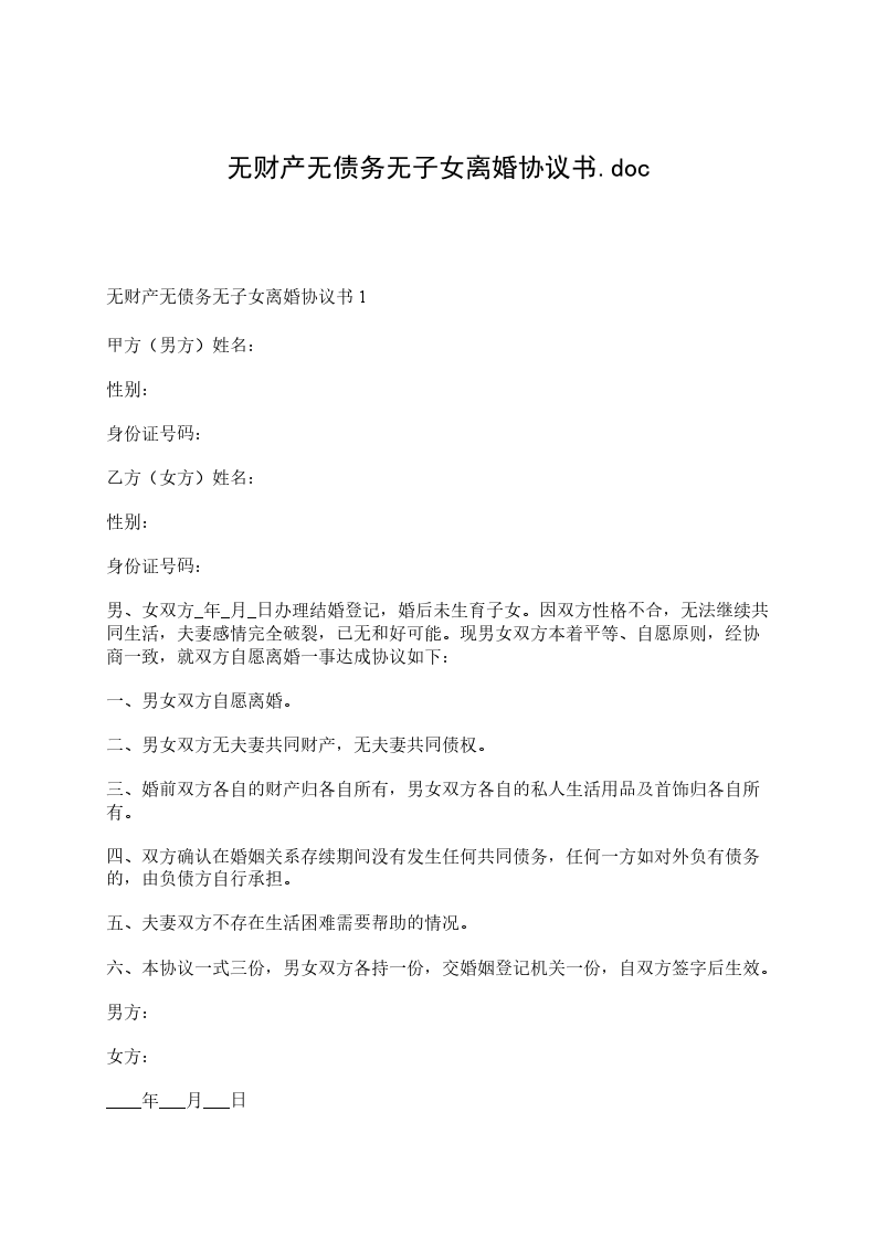 四、夫妻无共同债权及债务。