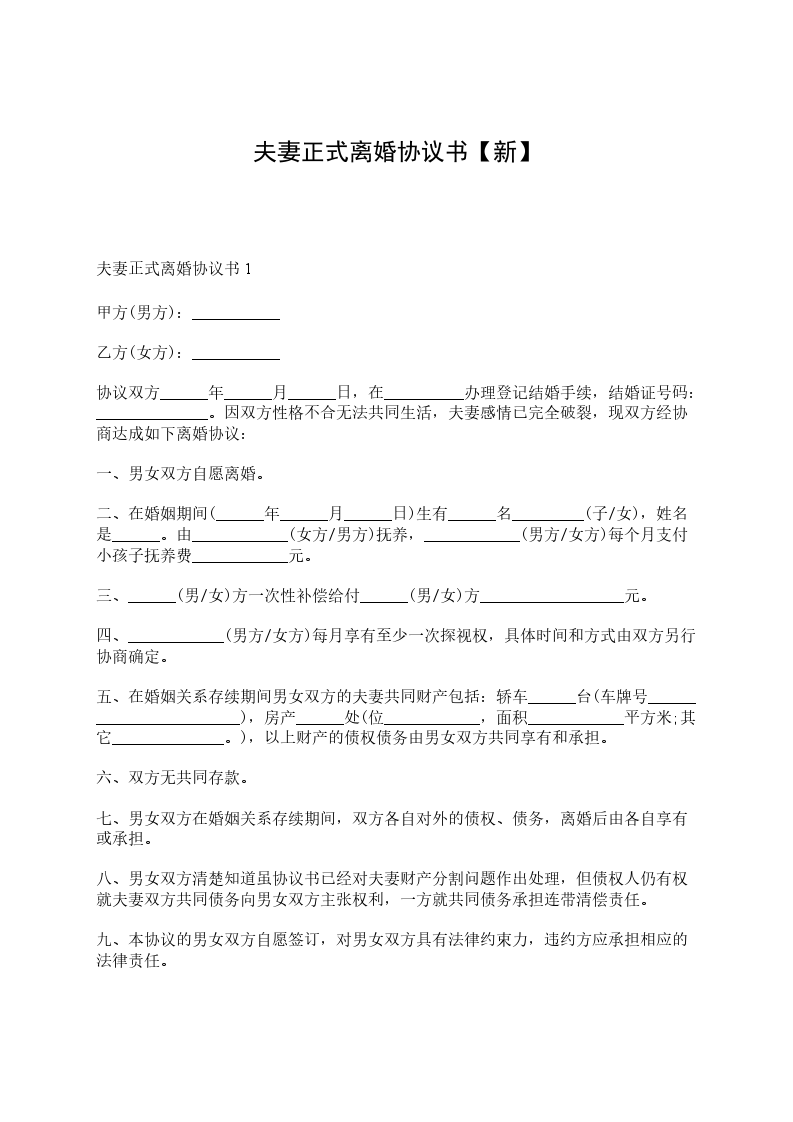 协议人双方_____年_____月_____日在_____市_____区民政局办理了结婚登记手续,现在因双方性格不合确无法共同生活,夫妻感情已完全的破裂,现双方就自愿离婚一事达成一致协议:
