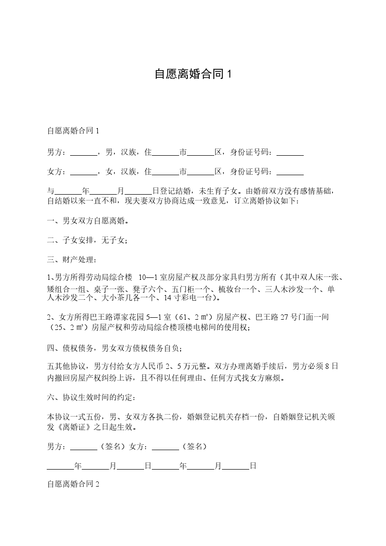 自愿离婚合同1