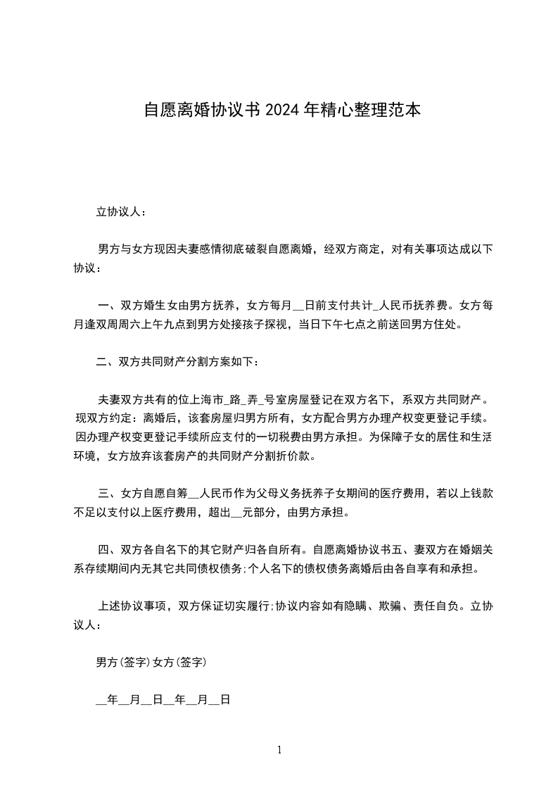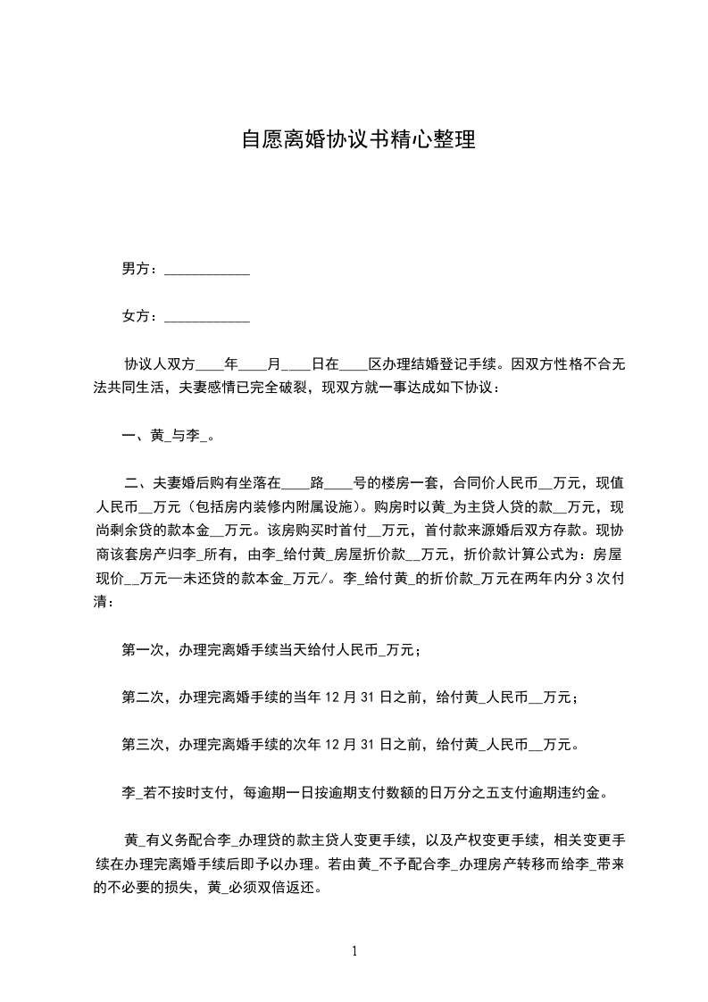 1、上列男女双方经充分协商,达成一致意见签订本离婚协议。