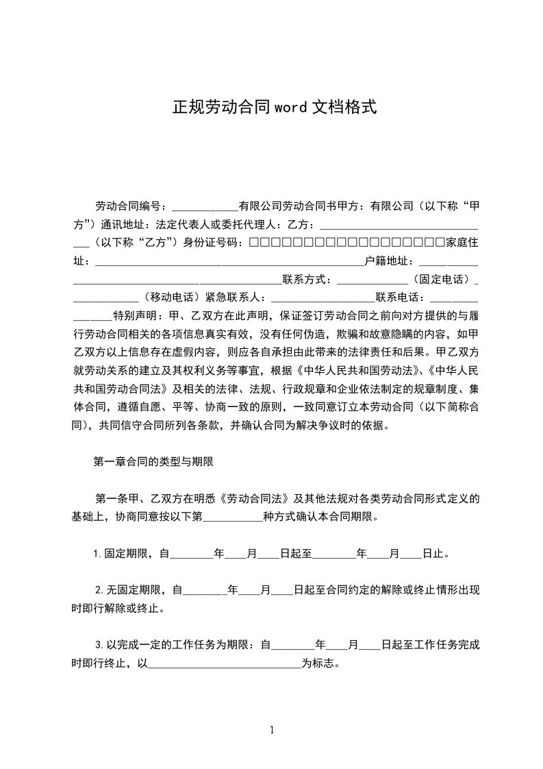 劳动合同编号:____________有限公司劳动合同书甲方:有限公司(以下称“甲方”)通讯地址:法定代表人或委托代理人:乙方:________________________________(以下称“乙方”)身份证号码:□□□□□□□□□□□□□□□□□□家庭住址:_________________________________________________户籍地址:_________________________________________________联系方式:_____________(固定电话)_____________(移动电话)紧急联系人:___________________联系电话:________________特别声明:甲、乙双方在此声明,保证签订劳动合同之前向对方提供的与履行劳动合同相关的各项信息真实有效,没有任何伪造,欺骗和故意隐瞒的内容,如甲、乙双方以上信息存在虚假内容,则应各自承担由此带来的法律责任和后果。甲乙双方就劳动关系的建立及其权利义务等事宜,根据《中华人民共和国劳动法》、《中华人民共和国劳动合同法》及相关的法律、法规、行政规章和企业依法制定的规章制度、集体合同,遵循自愿、平等、协商一致的原则,一致同意订立本劳动合同(以下简称合同),共同信守合同所列各条款,并确认合同为解决争议时的依据。