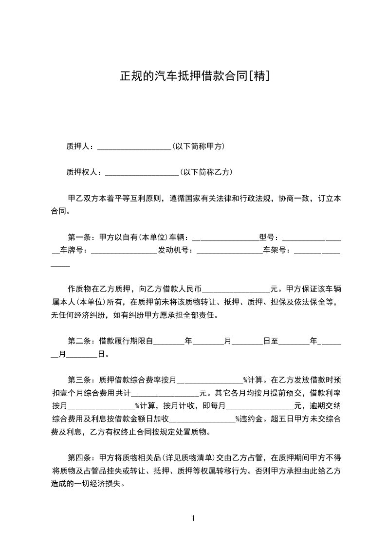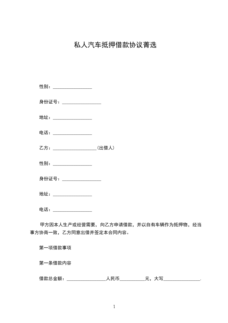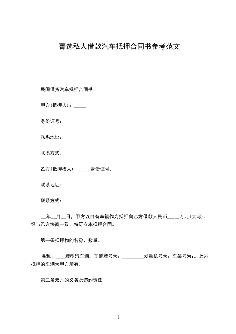 汽车抵押借款合同范本