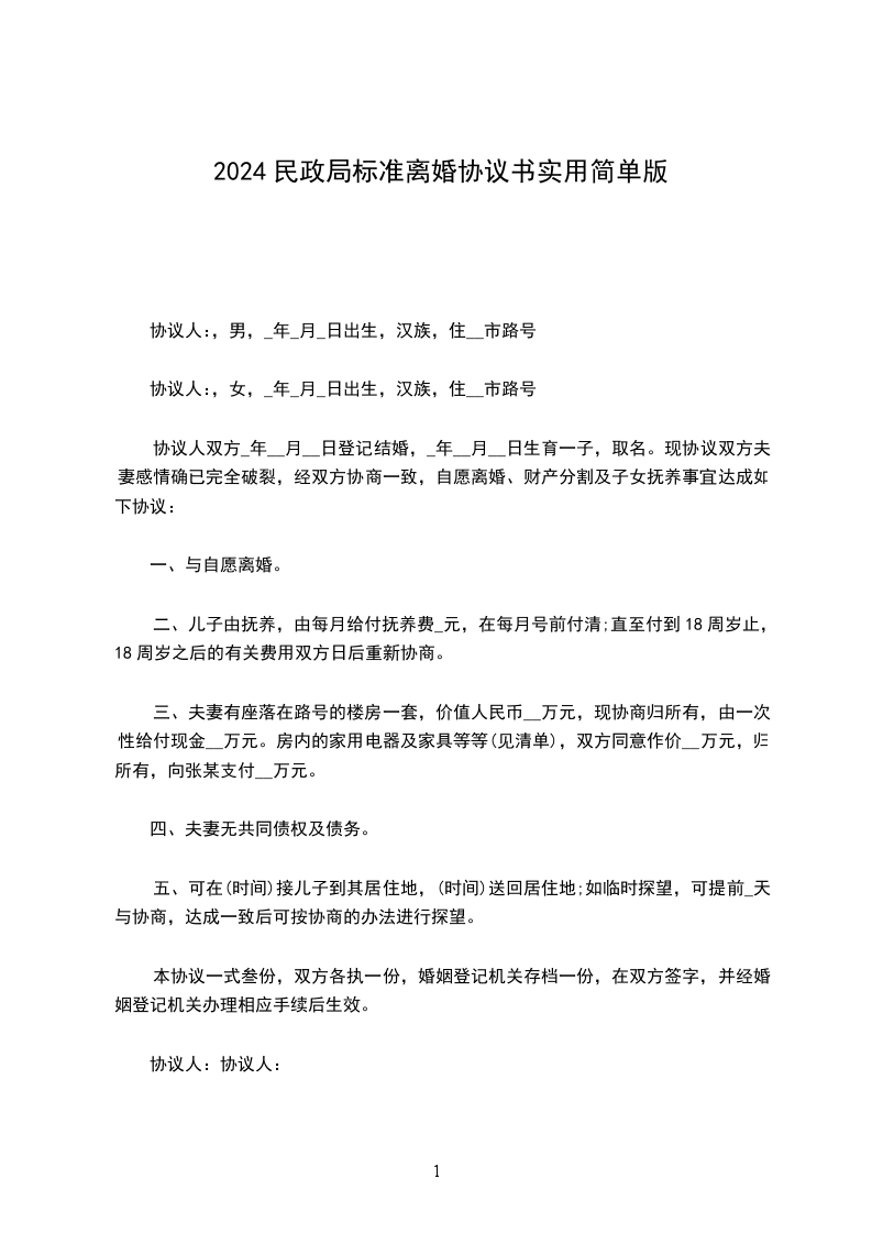简单离婚协议书标准版篇九男方:王__,汉族,25岁,__省__县__乡__村人,住本村。