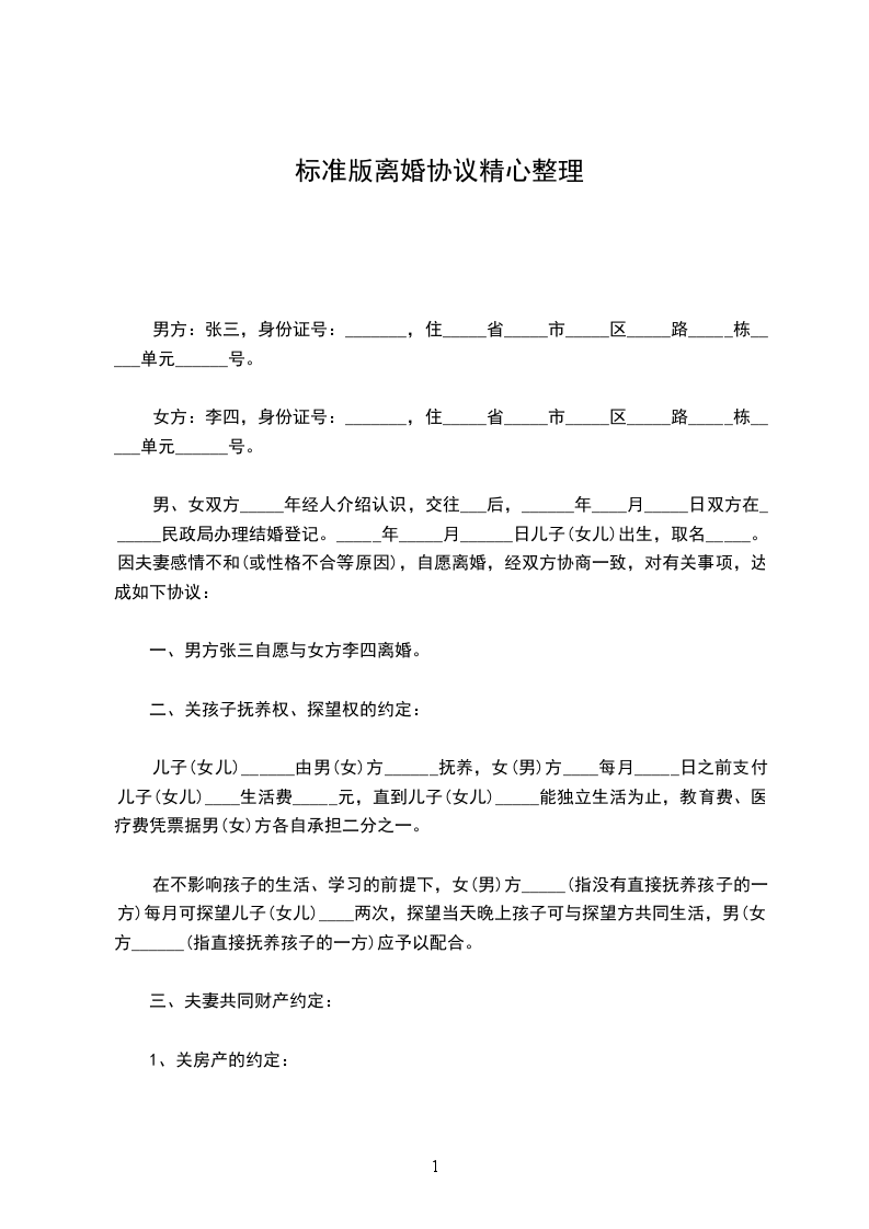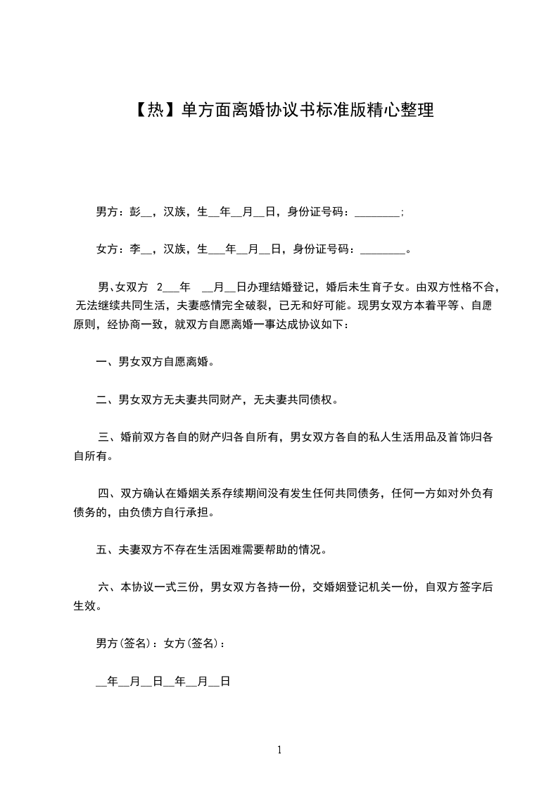 篇二男方:,男,汉族,_年_月_日生,住,身份证号码: