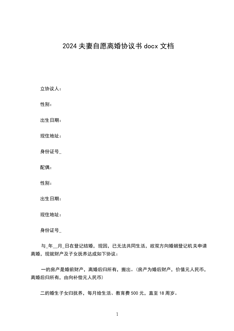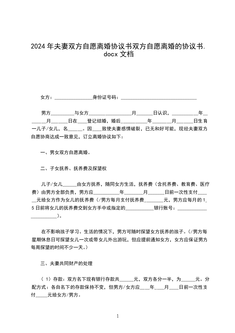 男方____与女方________年__月认识,__年__月__日在____登记结婚,婚后__年__月__日生育一儿子/女儿,名______.因____致使夫妻感情破裂,已无和好可能,现经夫妻双方自愿协商达成一致意见,订立离婚协议如下: