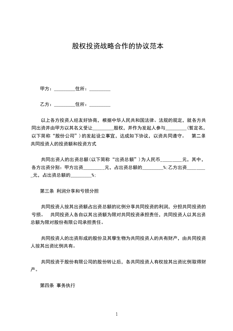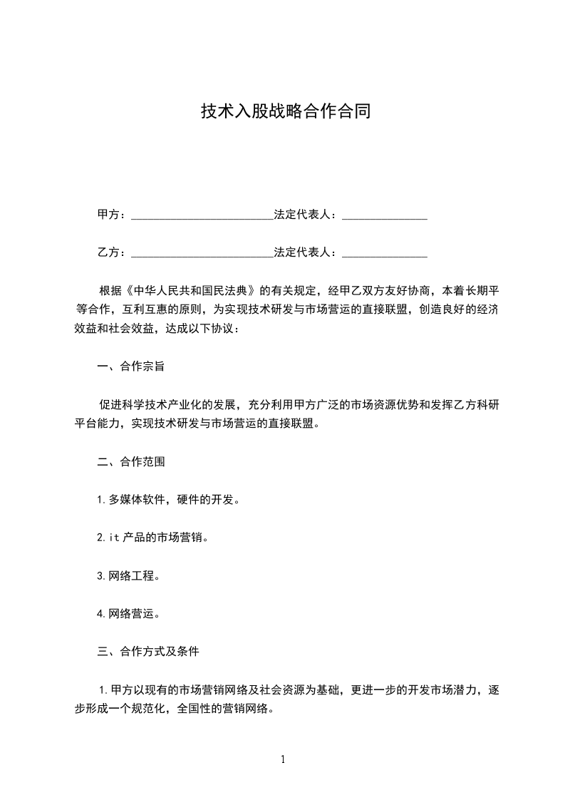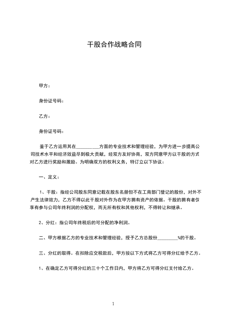 二、甲方根据乙方的专业技术和管理经验,授予乙方总股份_________%的干股。