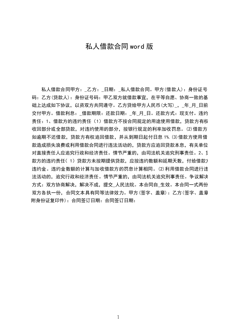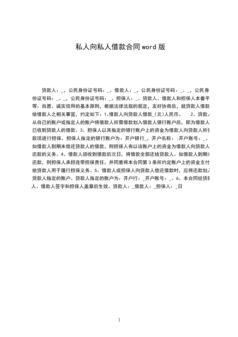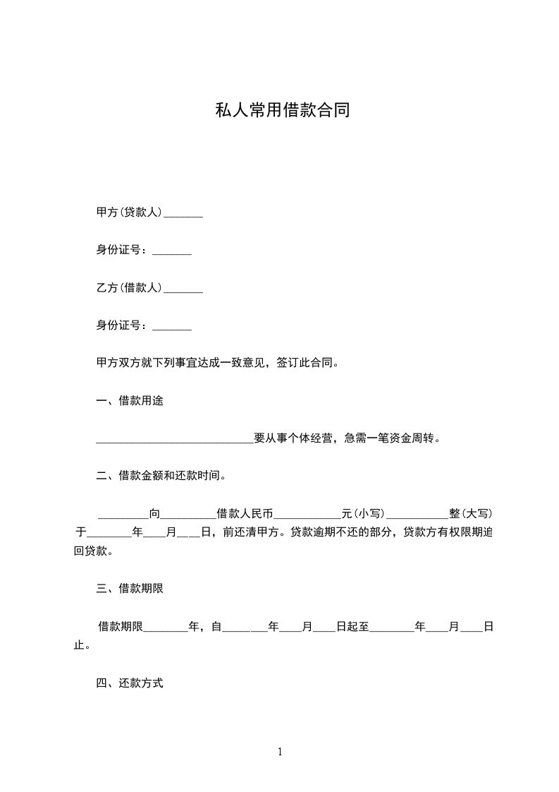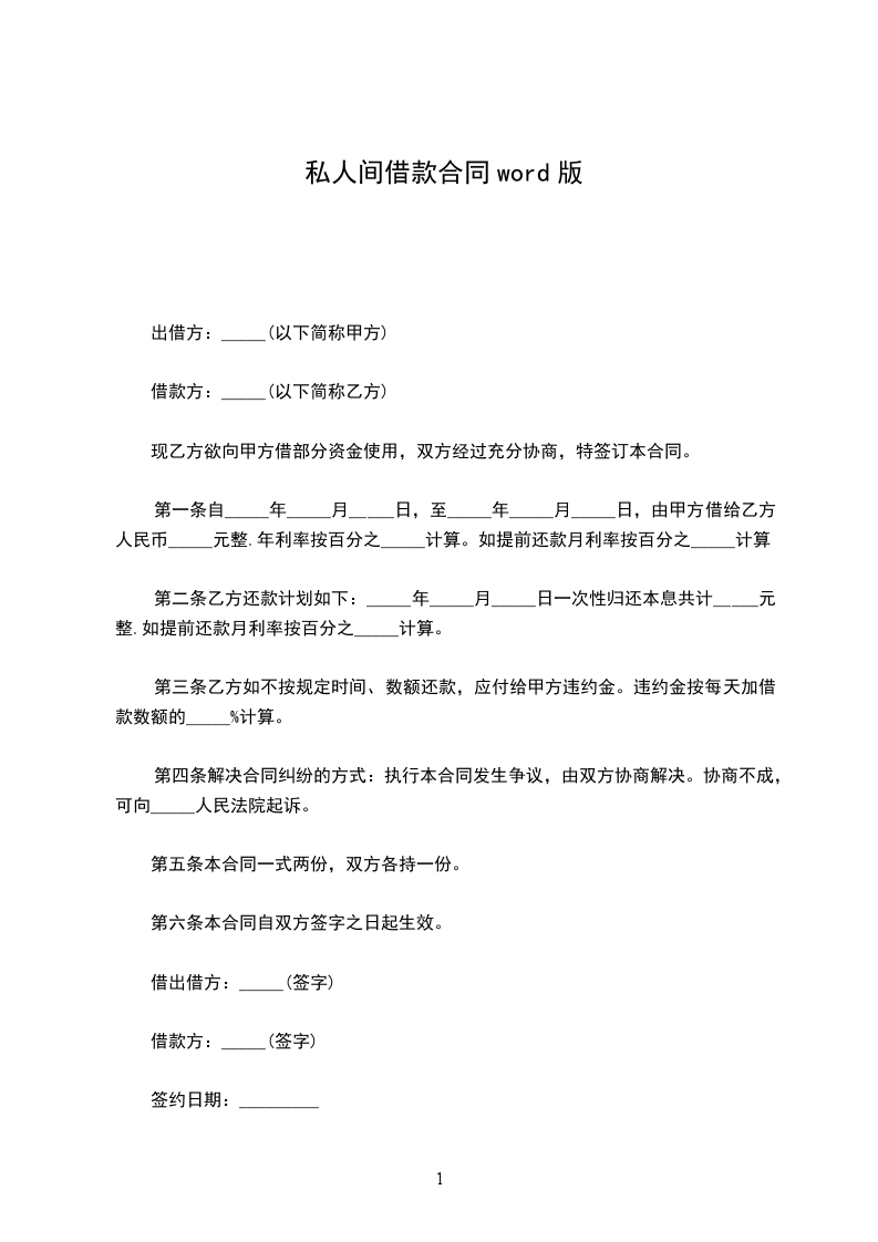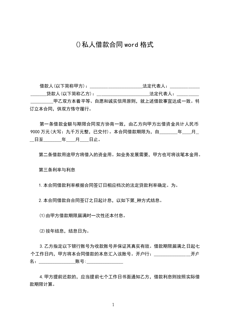 第一条借款金额甲方向乙方借款人民币(大写)_________________________元。
