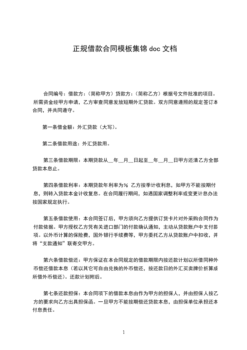 第一条借金额:外汇贷款(大写)。