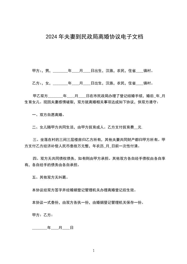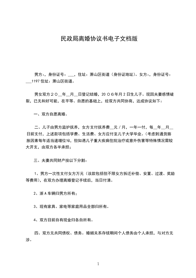 六、本协议书男女双方签字并协同至民政机关办理登记后,正式生效,本协议书一式三份,双方各执一份,婚姻登记机关存档一份。