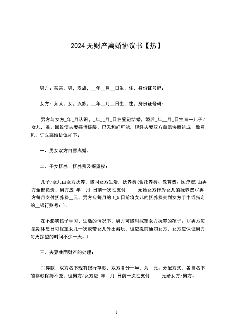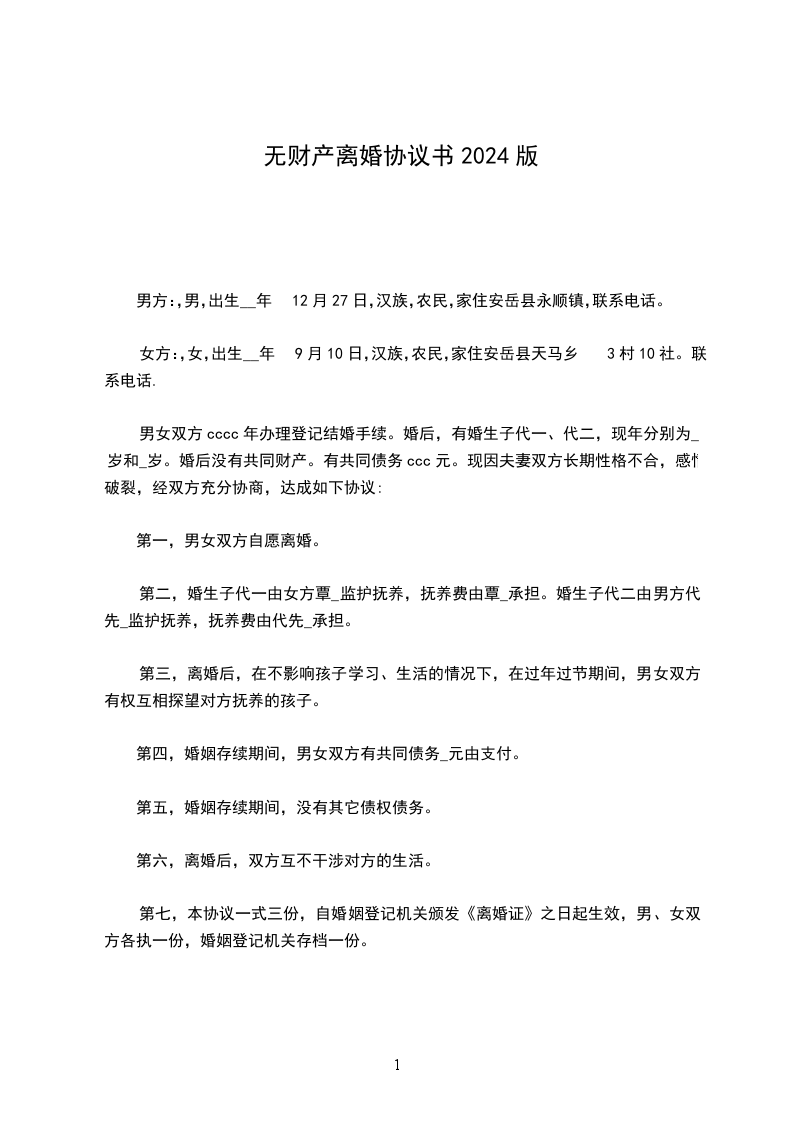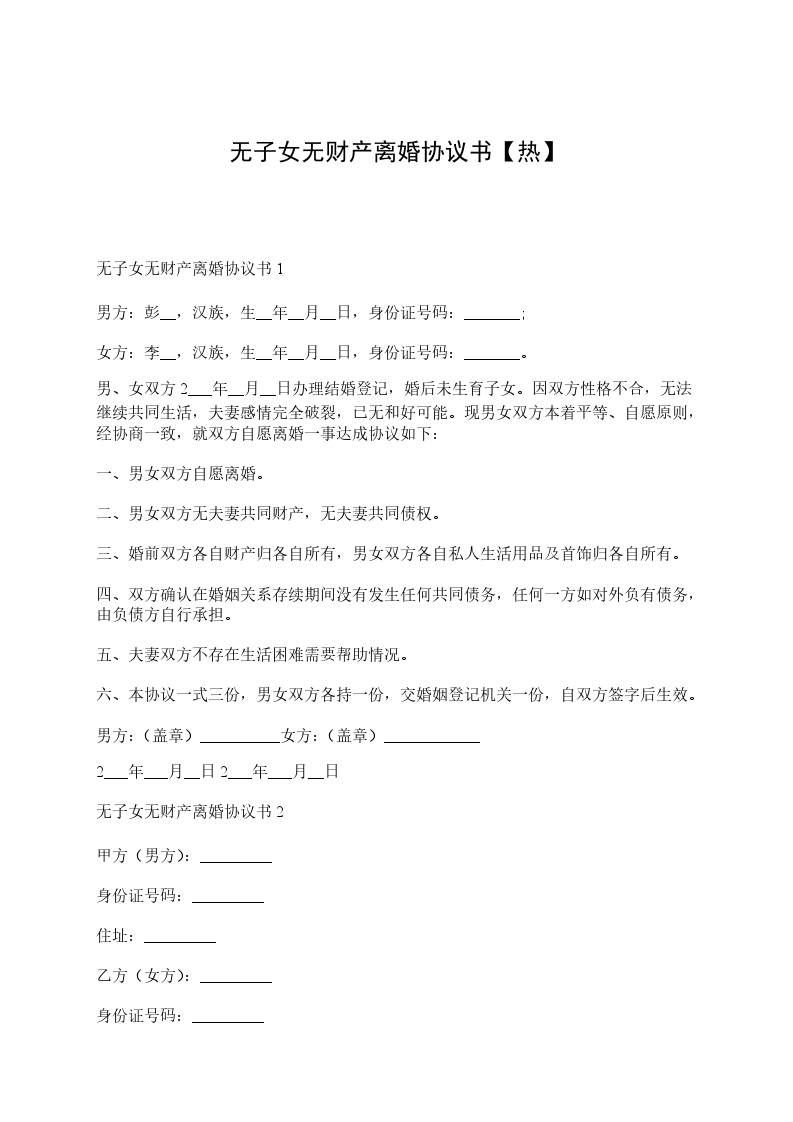 男方与女方_年_月认识,_年__月_日在登记结婚,婚后_年__月_日生育一儿子/女儿,名。因致使夫妻感情破裂,已无和好可能,现经夫妻双方自愿协商达成一致意见,订立离婚协议如下: