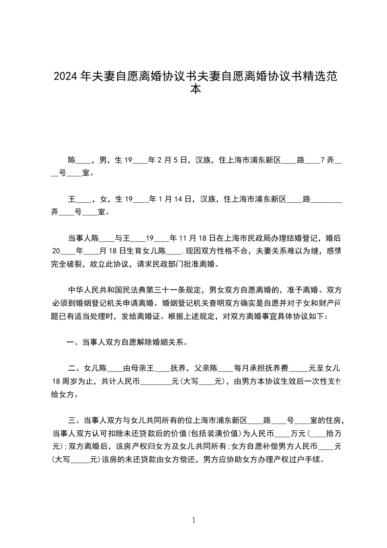 六、本协议书一式三份,男女双方各执,婚姻登记机关存档。