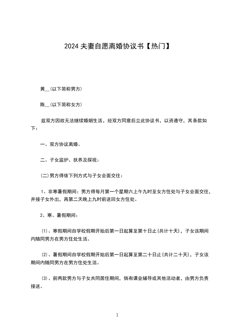 一、双方自愿离婚。