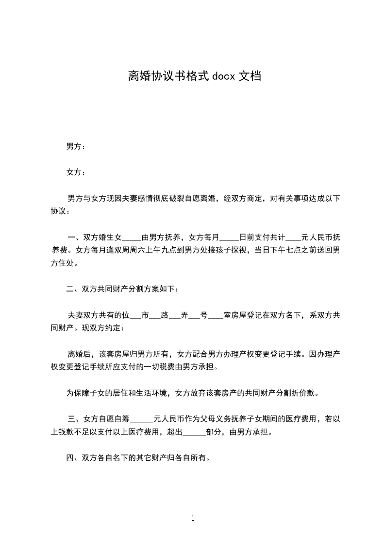 八、本协议一式三份,男、女双方各执一份,婚姻登记机关存档一份,自婚姻登记机颁发《离婚证》之日起生效。