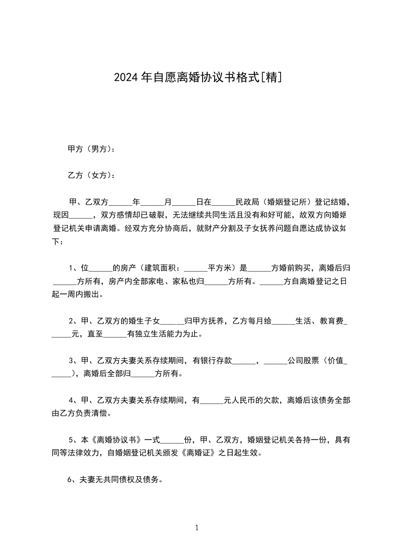 一、____与____自愿离婚。