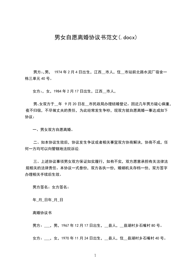 男方:女方: