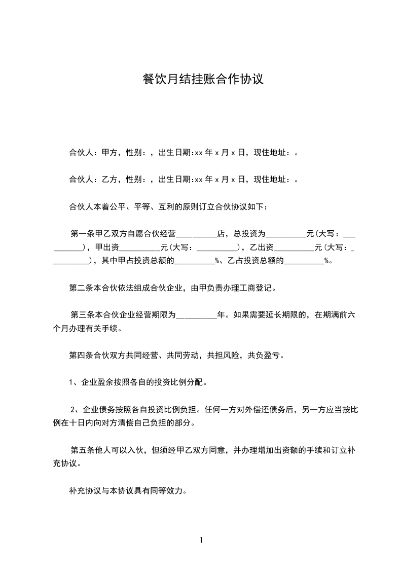 1、在经营过程中,若发生不在本合同内的问题,由双方协商解决。如有未尽事宜,双方可协商补充条款。补充条款于本合同具有同等法律效力。