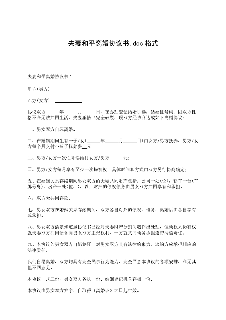 本离婚协议书的样本一式叁份,双方各执一份,婚姻登记机关存档一份,在双方签字,并经婚姻登记机关办理相应手续后生效。