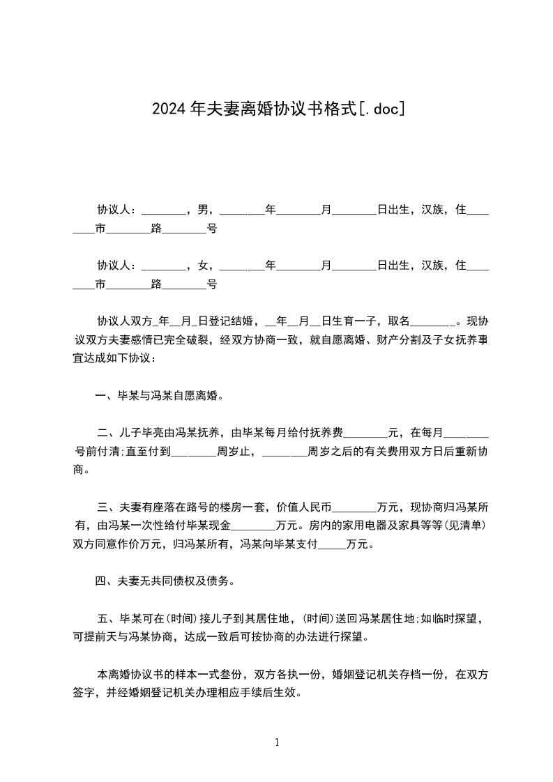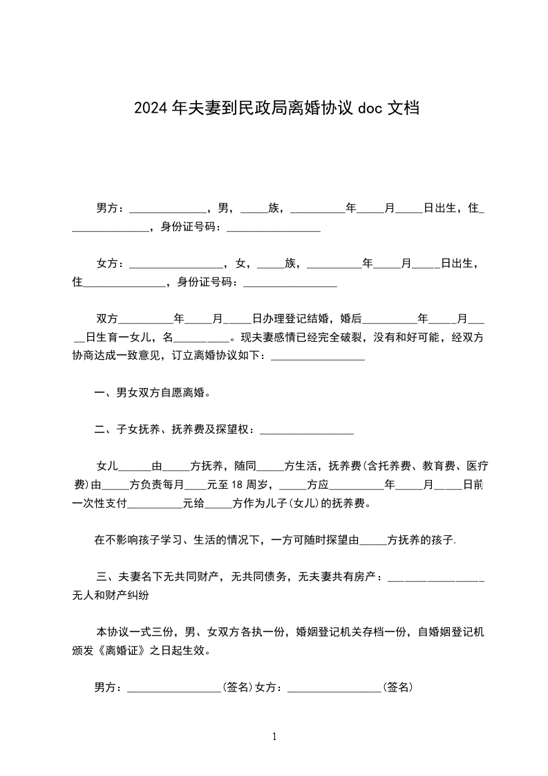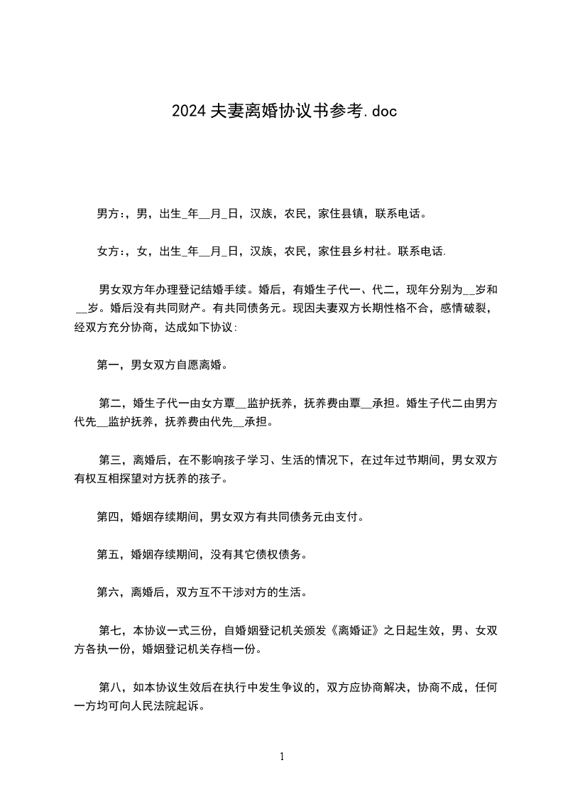 男方:______,男,__________年__月__日出生,汉族,住市区/县路
