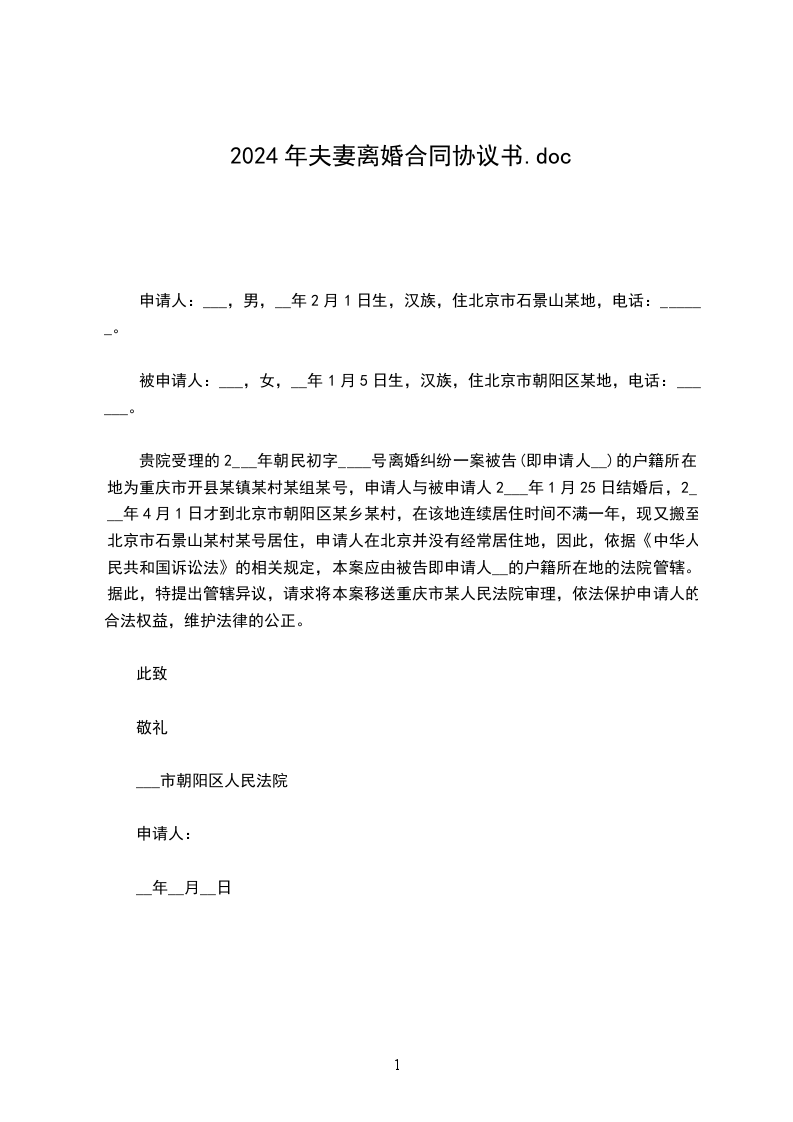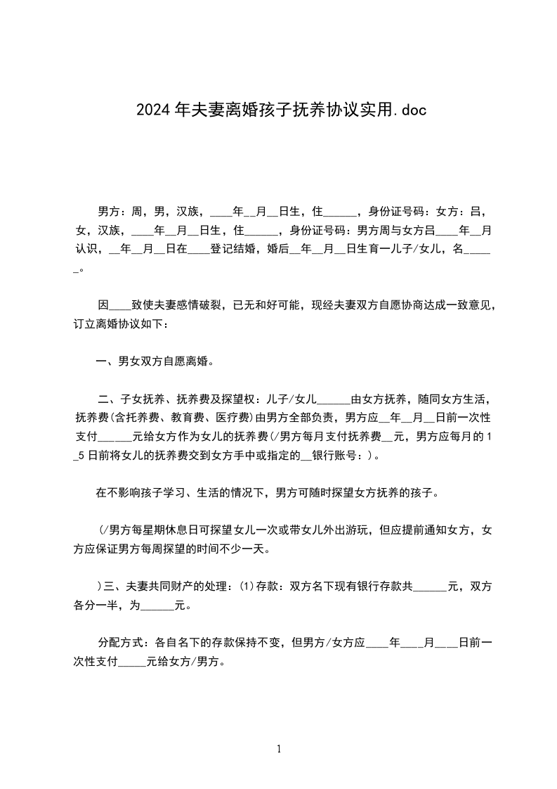 女方:______,女,__________年__月__日出生,汉族,住市区/县路