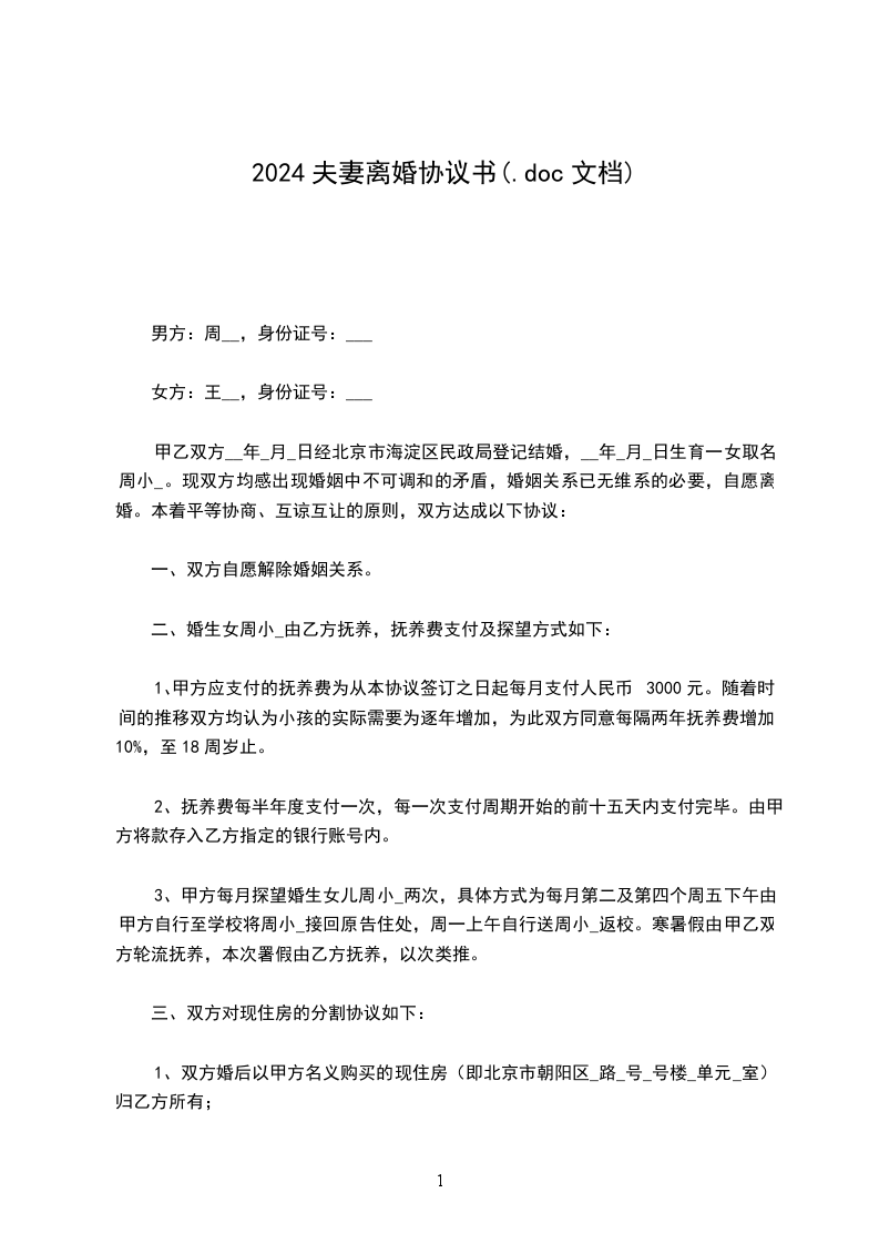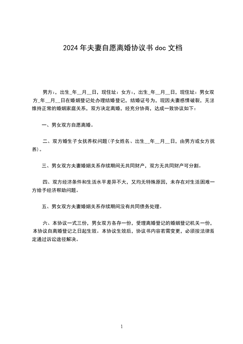 第一条:男女双方自愿离婚。基不影响子女生活和学习的原则,双方本着相互体谅的态度,协助办理如下各项事宜。