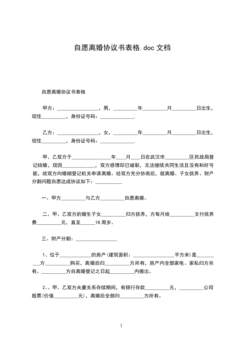 一、与自愿离婚。