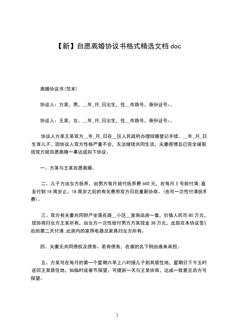 篇3协议人:,男,_年_月_日出生,汉族,住__市路号