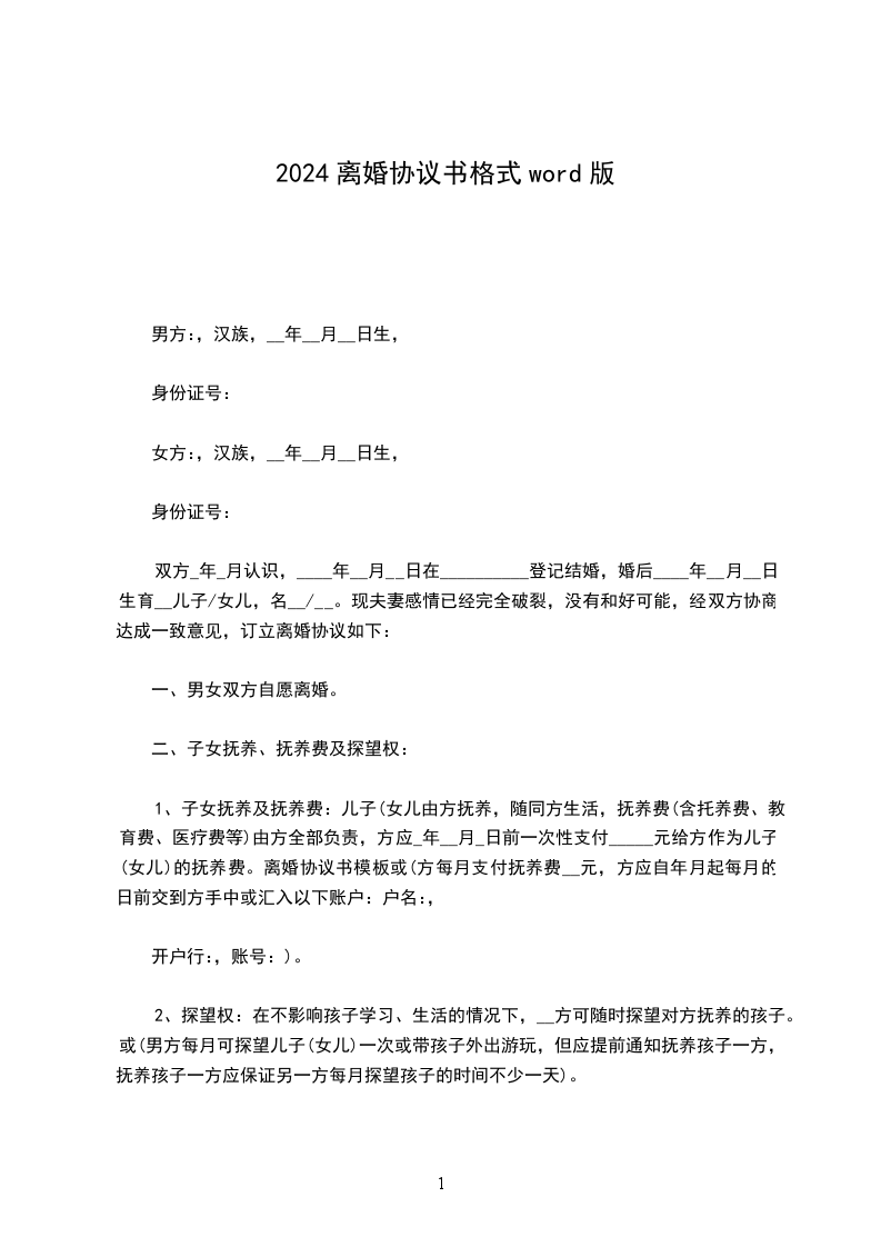 协议人:__女,__年__月__日出生,汉族,住__市__路__号