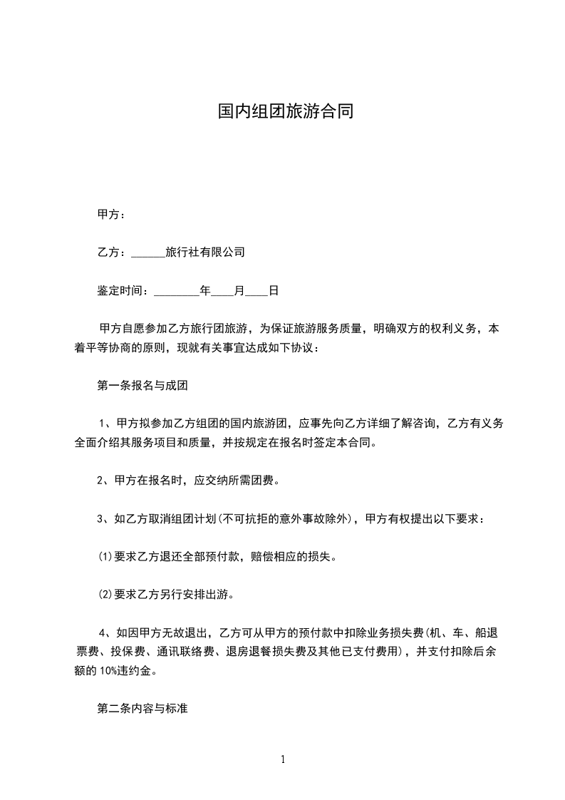 1、甲方拟参加乙方组团的国内旅游团,应事先向乙方详细了解咨询,乙方有义务全面介绍其服务项目和质量,并按规定在报名时签定本合同。