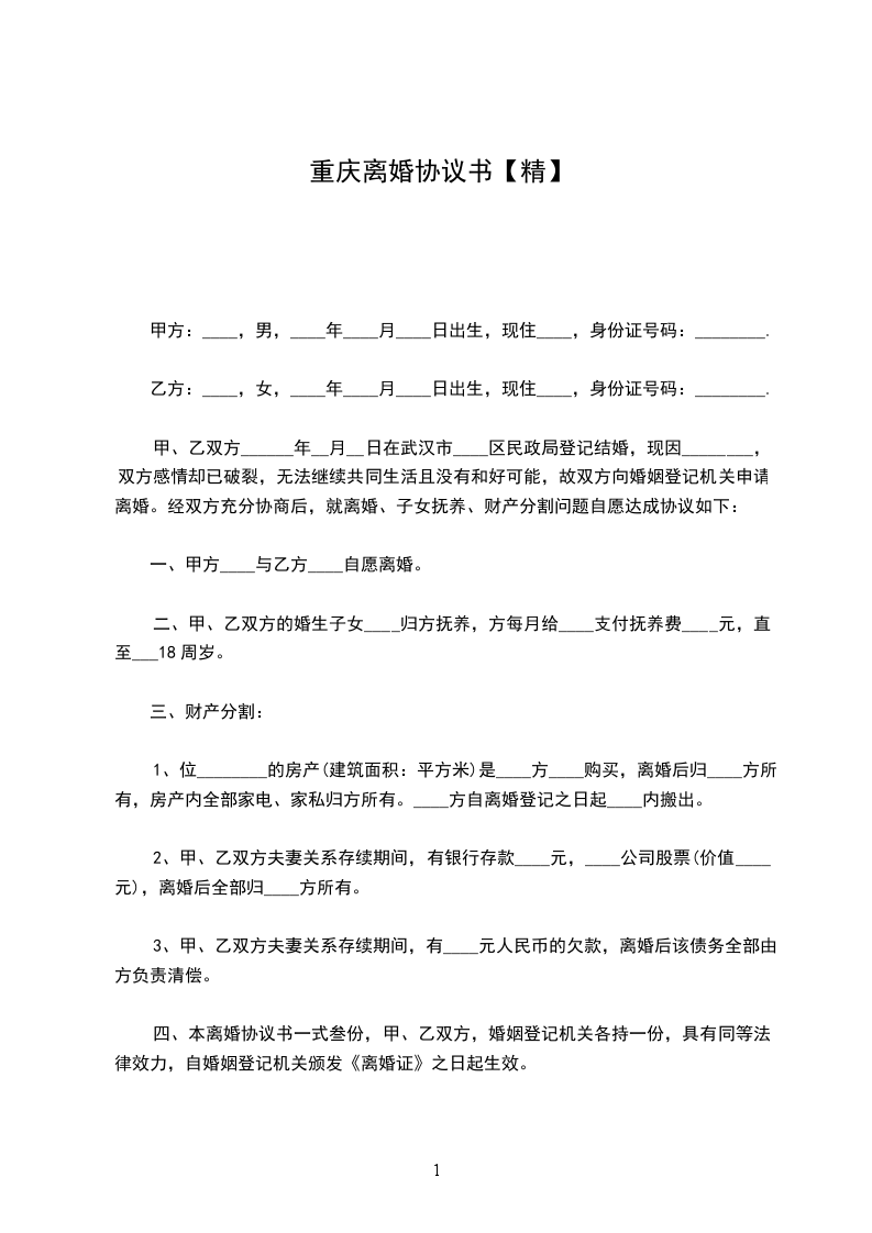 双方____年__月认识,____年__月__日在____登记结婚,婚后无育有子女。现夫妻感情已经完全破裂,没有和好可能,经双方协商达成一致意见,订立离婚协议如下: